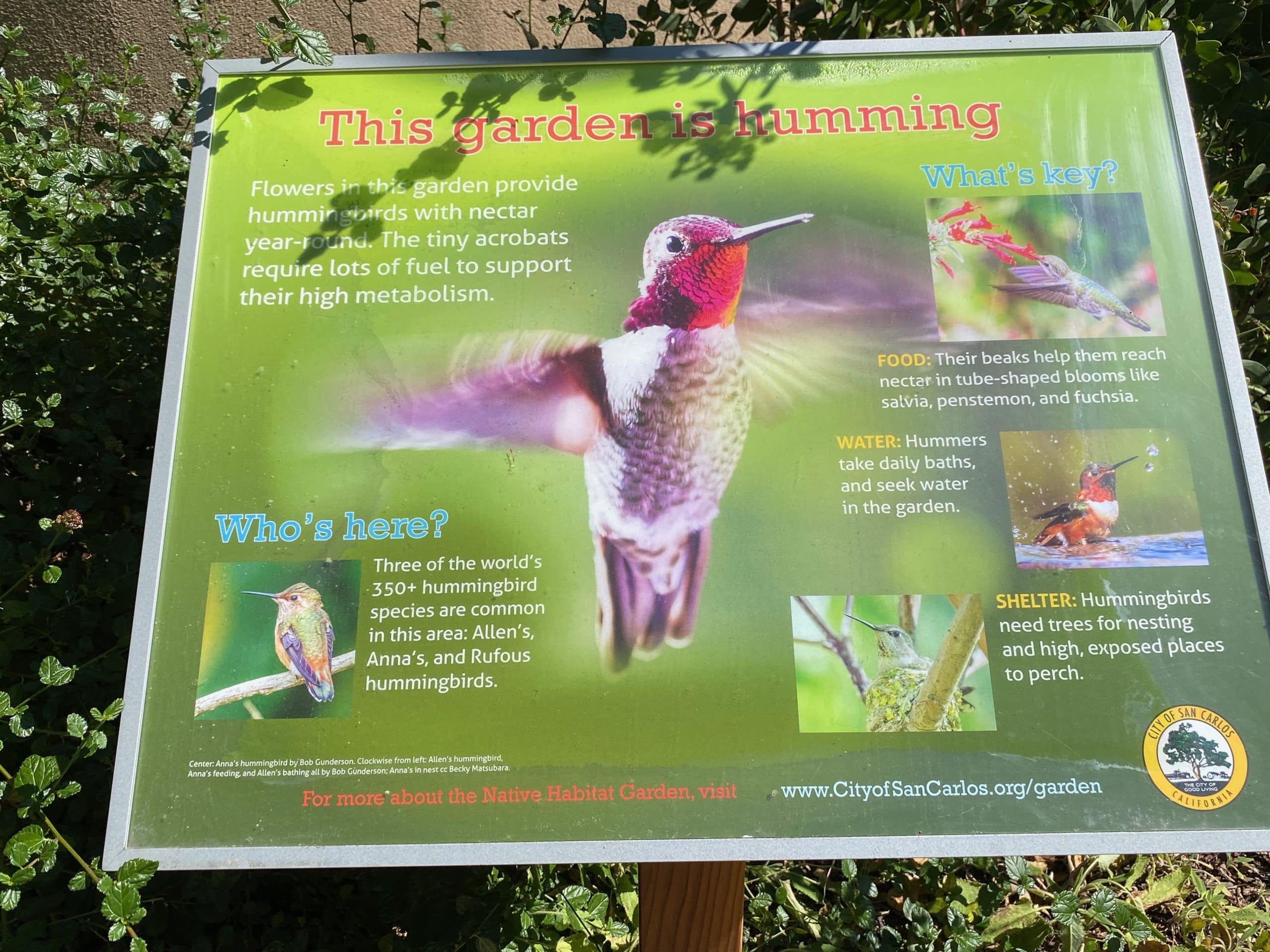 This turned out to be a wonderful partnership between the Master Gardeners and the City. Parks staff cleared much of the old landscaping and provided the soil and installed a new irrigation system, while the Master Gardeners planned the garden, obtained California native plants at specialized nurseries, and planted the new Native Habitat Garden. The City created signage specific to each area of the garden with information about the wildlife that benefit from the specific plants in the garden, while plant identification markers were also placed at each plant varietal. These