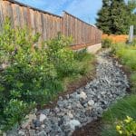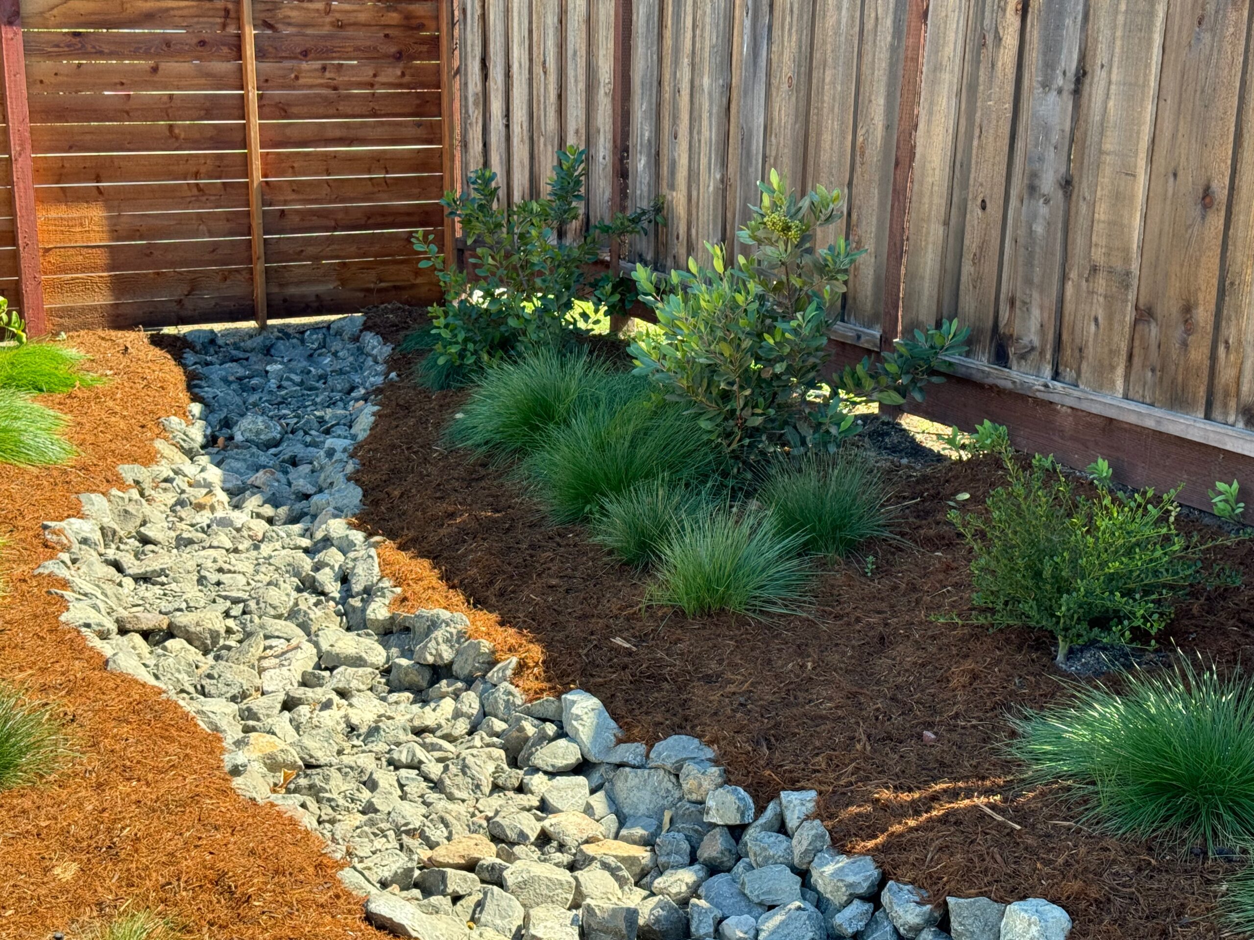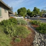When Gonzalo and his husband bought this large corner lot in 2021 they knew the large Bermuda grass lawns and London plane trees had to go. In their place Gonzalo, owner of Planetscaper Landscape Architecture, envisioned a resilient, eco-focused landscape that contained flourishing California native plants and edibles, retained rainwater on-site, and was built of mostly locally-sourced materials.