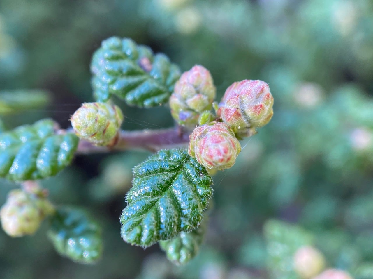 Within each catkin, tiny male (staminate) flowers are clustered and subtended by two bracts that are fused and form a cup or bell-shaped structure. The flowers are highly reduced, lacking petals. These flowers are wind-pollinated. As the wind blows, pollen is shaken out of the exposed stamens. What a clever design, and so beautiful!