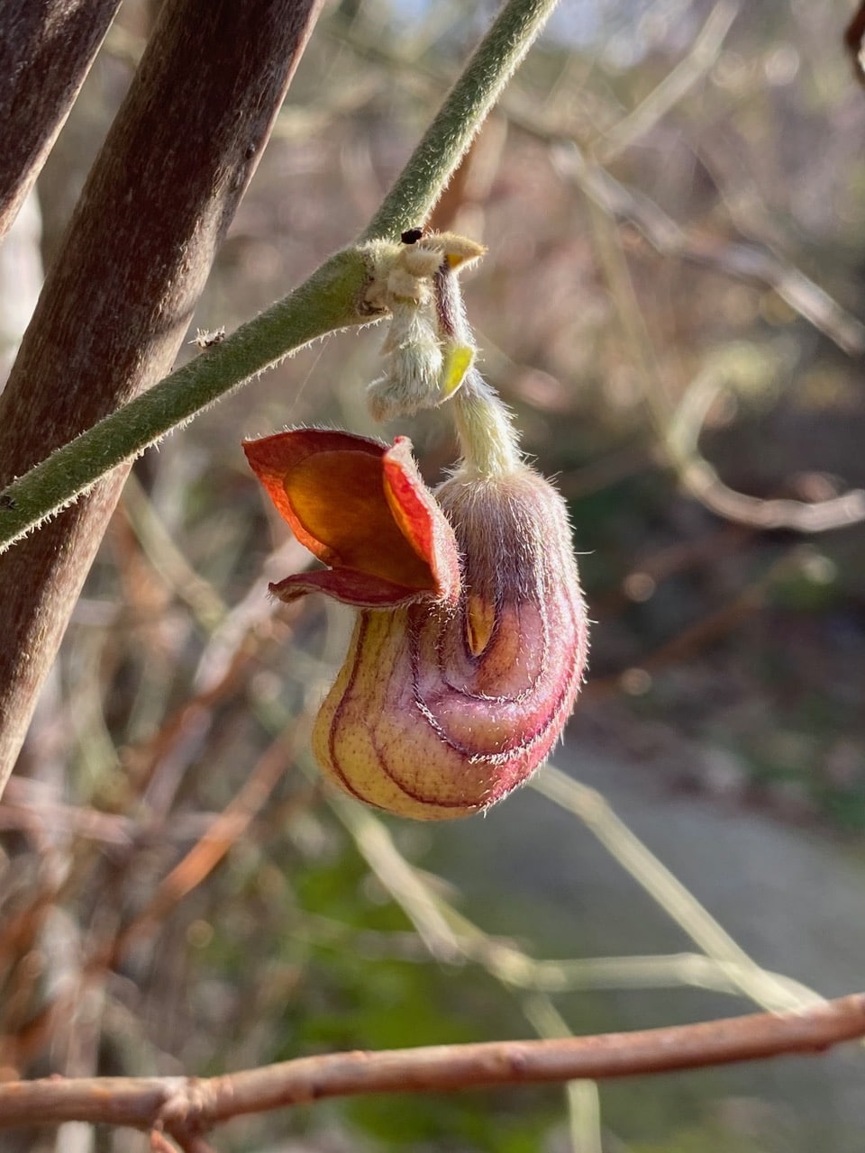 It is fun to watch over time how the little hairy nubbins at the nodes develop into full-blown pipe-shaped flowers…