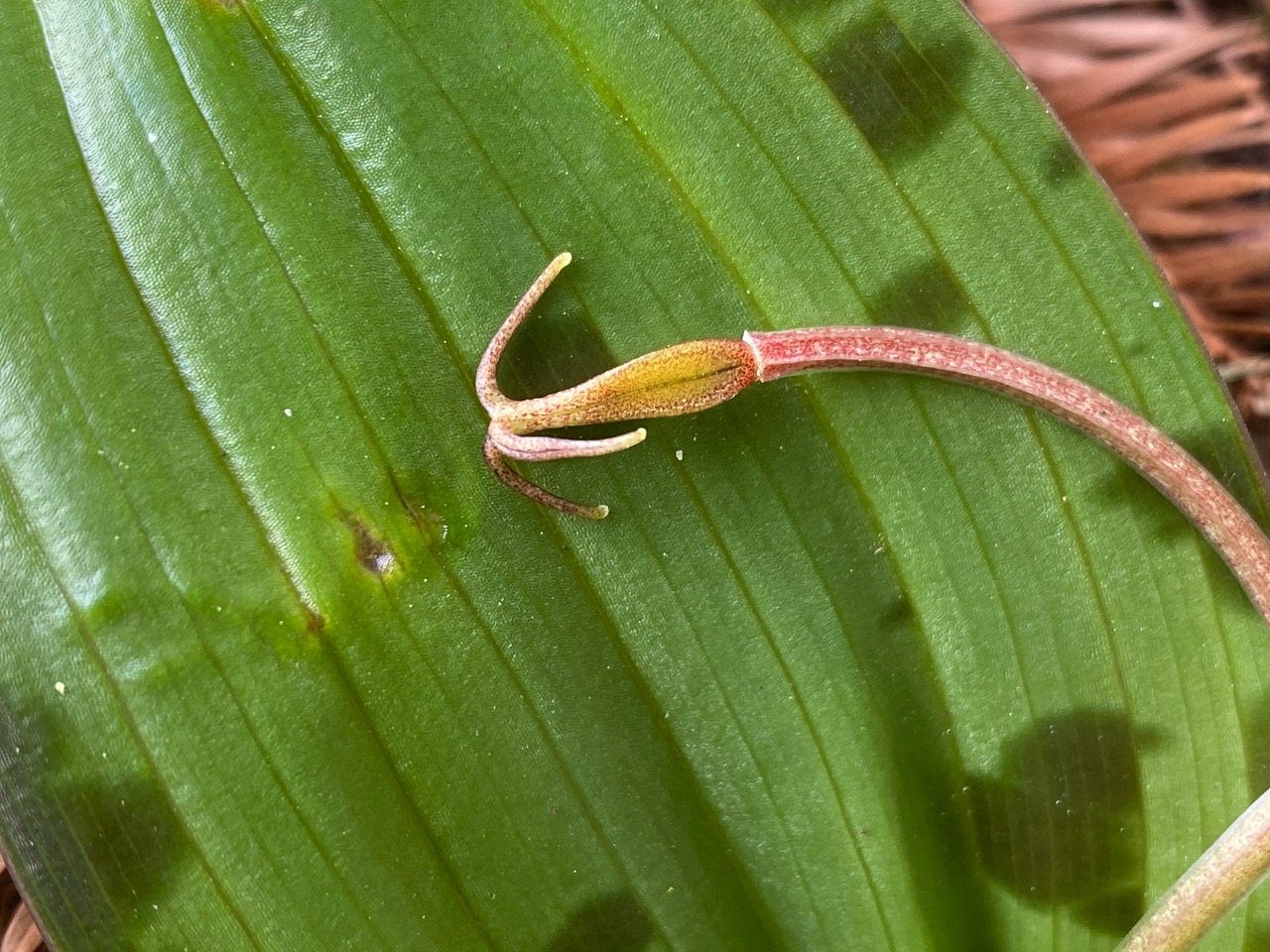 But there are signs that pollination has occurred – fruits. The fruit of Scoliopus bigelovii is a capsule. As it matures, the pedicel that bears it lengthens and twists, causing the capsule to slink onto the substrate. This is the origin of the other common name for the plant – Slinkpod.