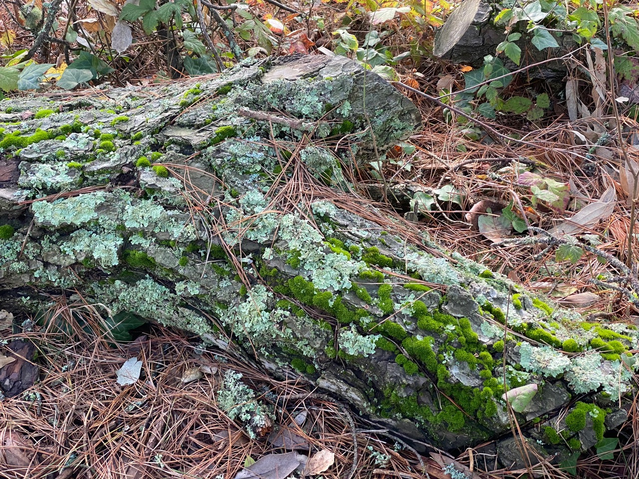 I take a small trail uphill through a moist forest, knowing I would be treated to a wide variety of mosses. A large log lying on the forest floor is covered with lichens and mosses.