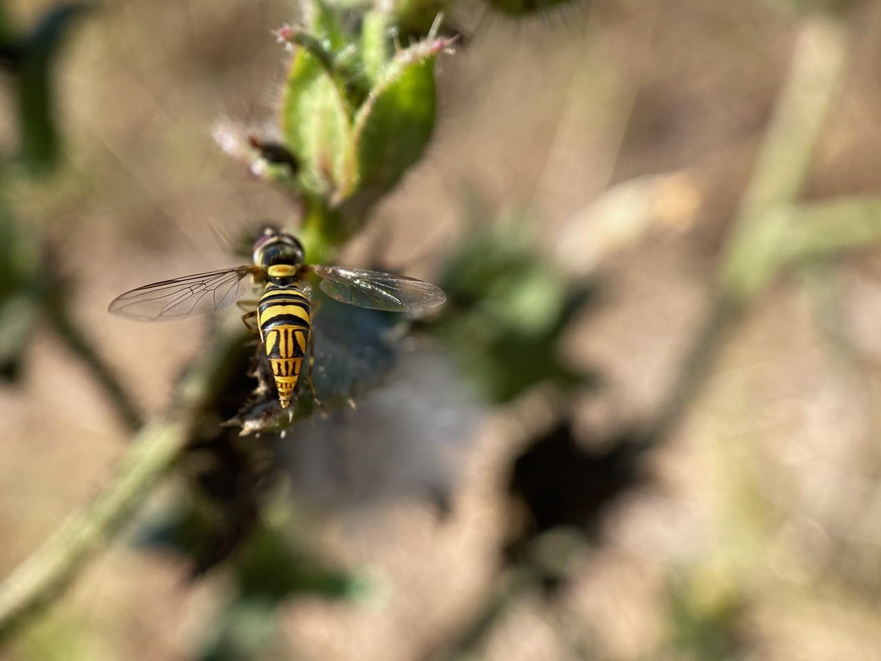… and elongated abdomen. So maybe the frenzied affair is a mating swarm? That’s the only time we are likely to encounter drones.