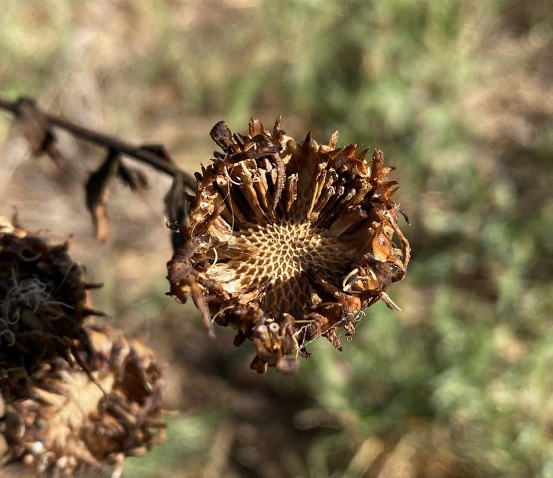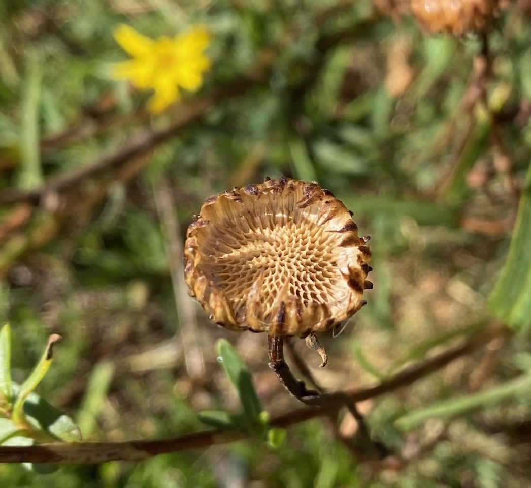 Here’s a Grindelia seed head that is emptied of its seeds (without my help).