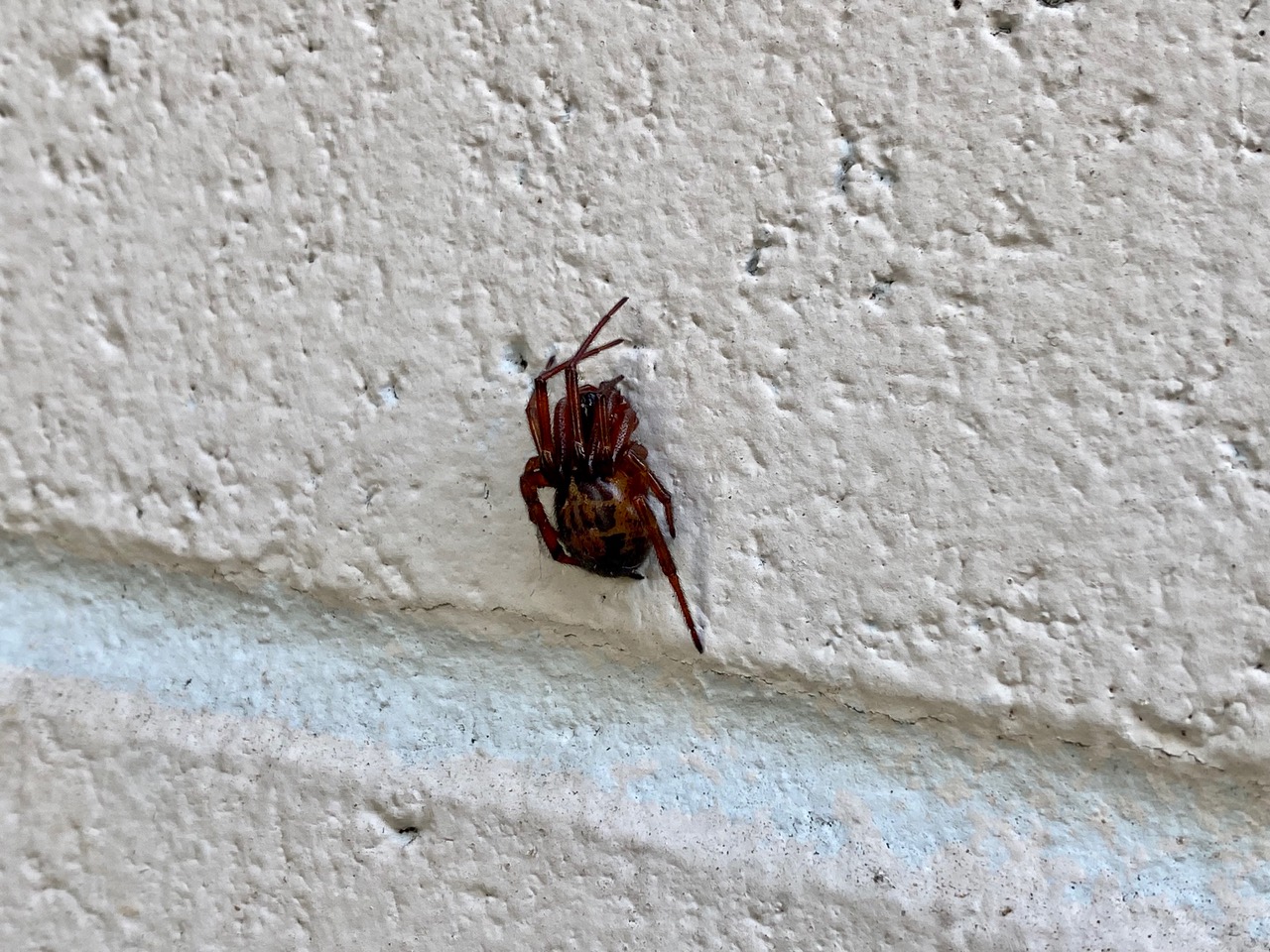 On the wall of the women’s restroom at the park, I find this rather large, dark brown spider. iNaturalist has helped identify it as the Noble False Widow, Steatoda nobilis (family Theridiidae). A new one for me!