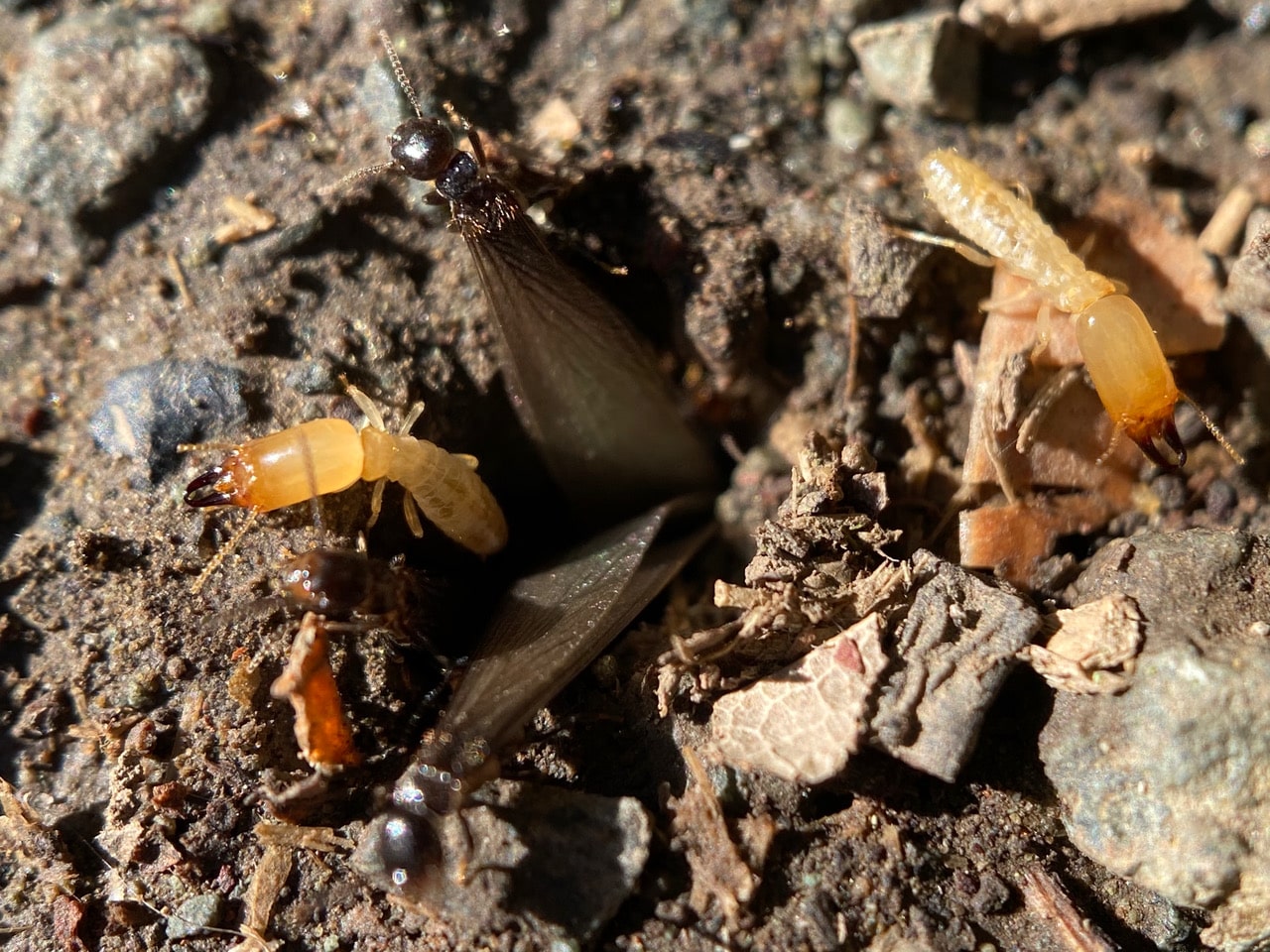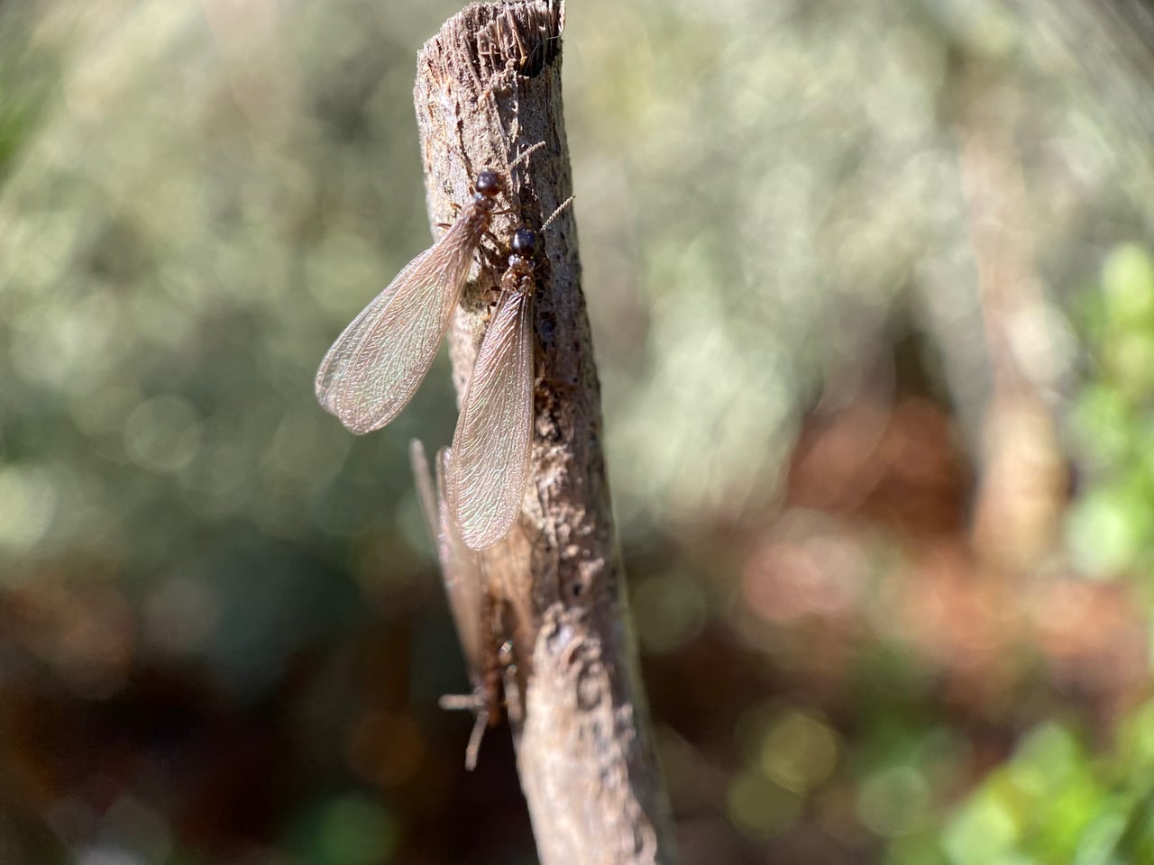 Barely a hundred feet ahead, I find an aggregation of termite alates massing on the bare soil of the trail.