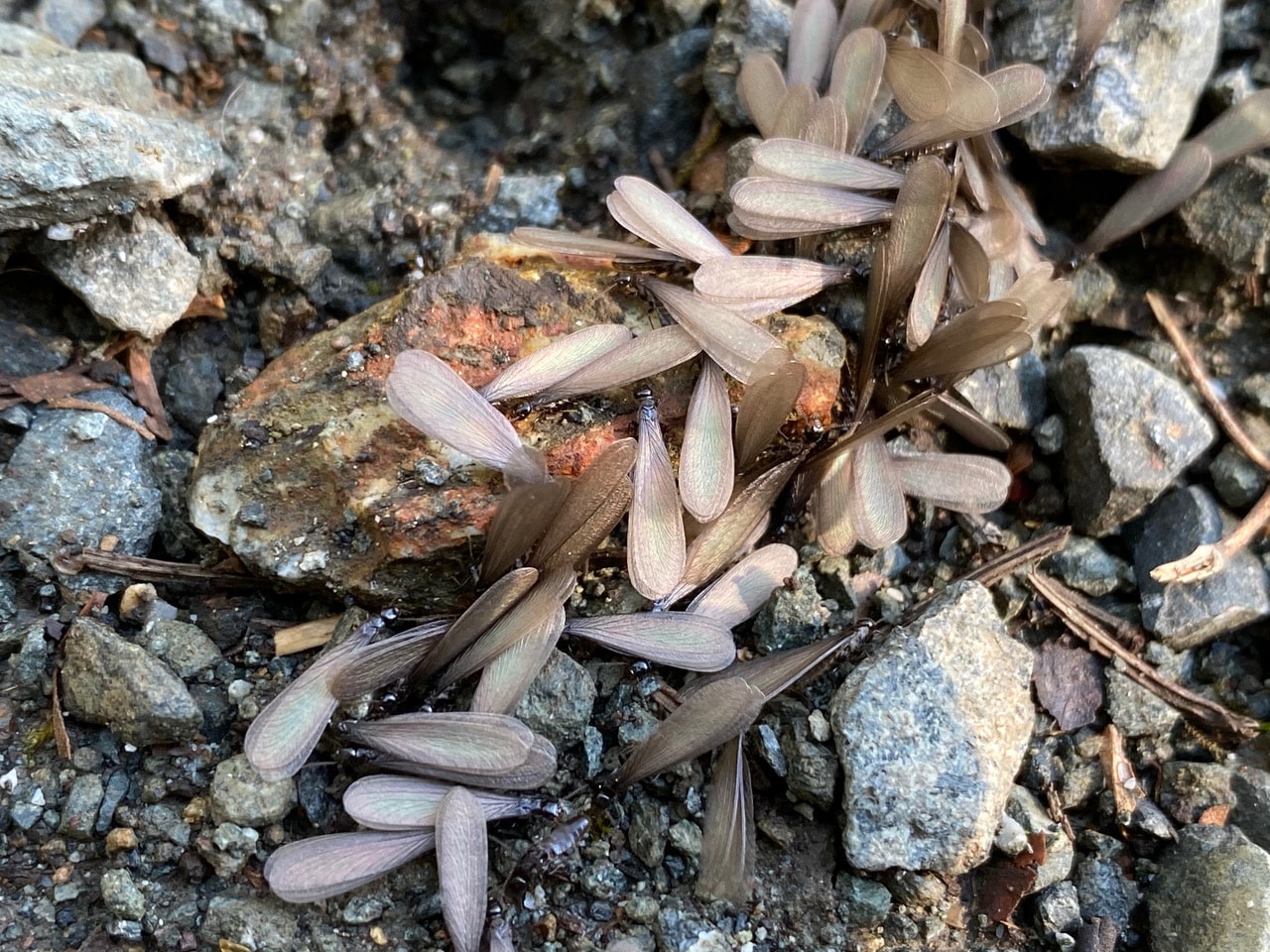As I continue on the trail, I come across many places where termite alates are erupting from the ground.