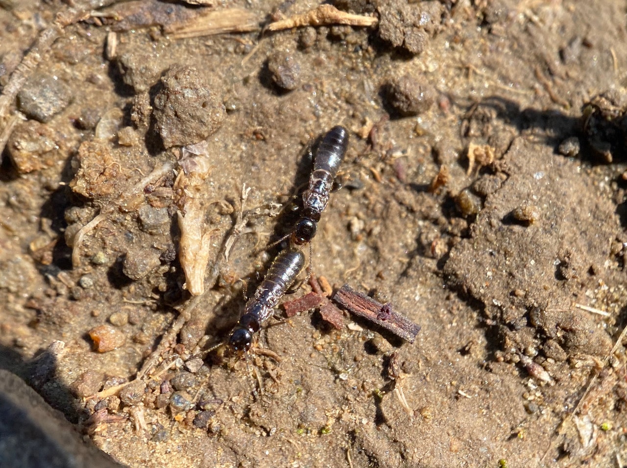 These are potentially the future queen and king of their colony. I am not sure which is male and which is female. Their former wings have been broken off quite cleanly. I am not able to see any remaining stubs.