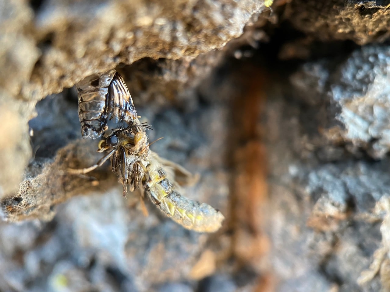 Look, here’s a vacated pupa case! See those two diverging “tubes” from which the antennae were pulled out?