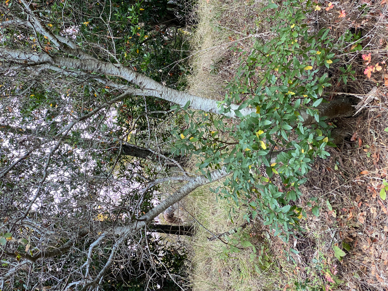 Barely three feet from the edge of the trail, I notice a small Coffeeberry growing in the embrace of a young oak tree. I did not see this the last time I was here.
