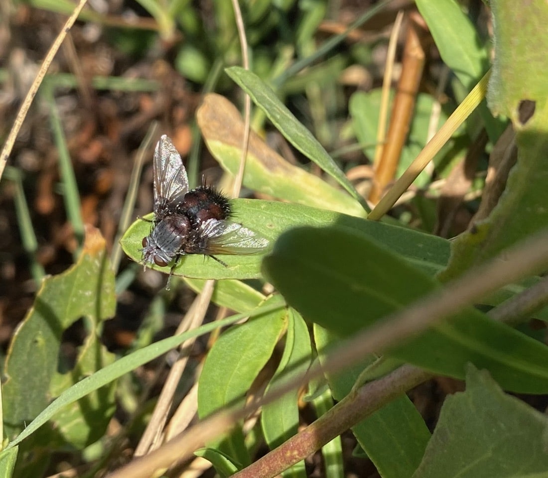 The family Tachinidae is by far the largest and most important group of parasitoid flies. All species are parasitic in the larval stage. Most adults have distinct abdominal bristles, hence the common name. Adults feed on liquids such as nectar and honeydew. They can be found resting on foliage, feeding at flowers or searching for hosts.