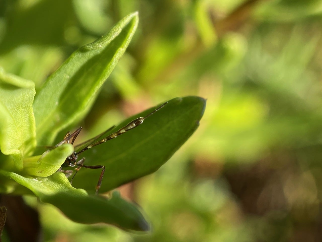A tiny wasp with a long skinny abdomen lands on a Grindelia, and promptly disappears into the foliage. There is an ovipositor at the tip of its abdomen – the wasp is a female parasitoid, Anomalon sp. (family Ichneumonidae) probably here in search of host insects on which to lay her eggs.