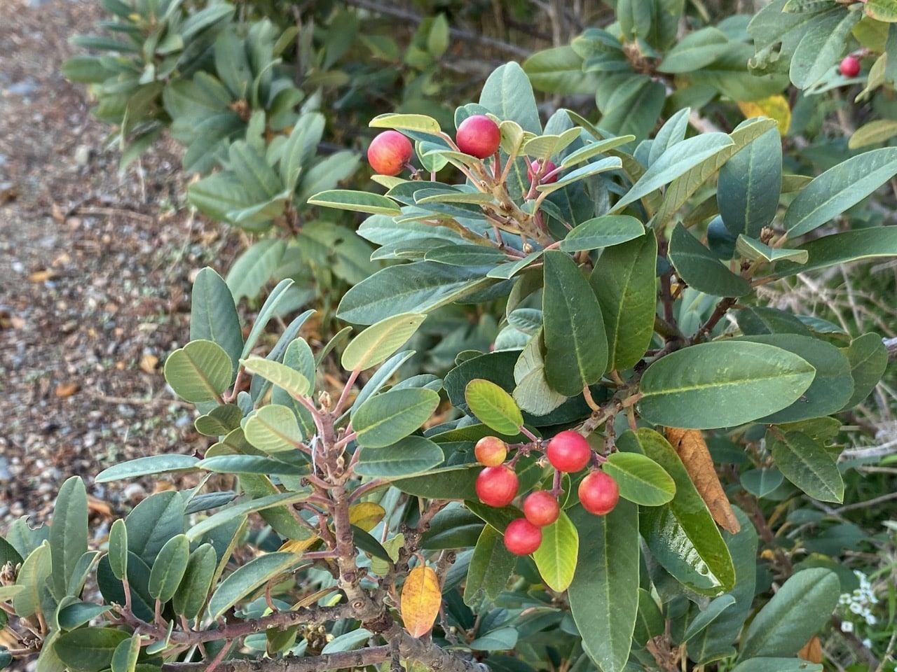 Curiously, the Coffeeberry is blooming and producing fruits this time of year.
