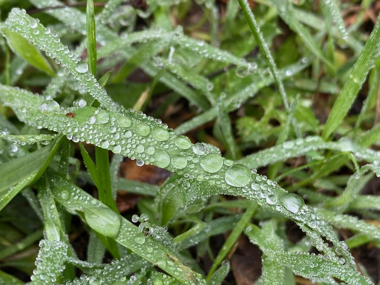 I love how the curved surfaces of the water drops magnify the features of the leaf under them.