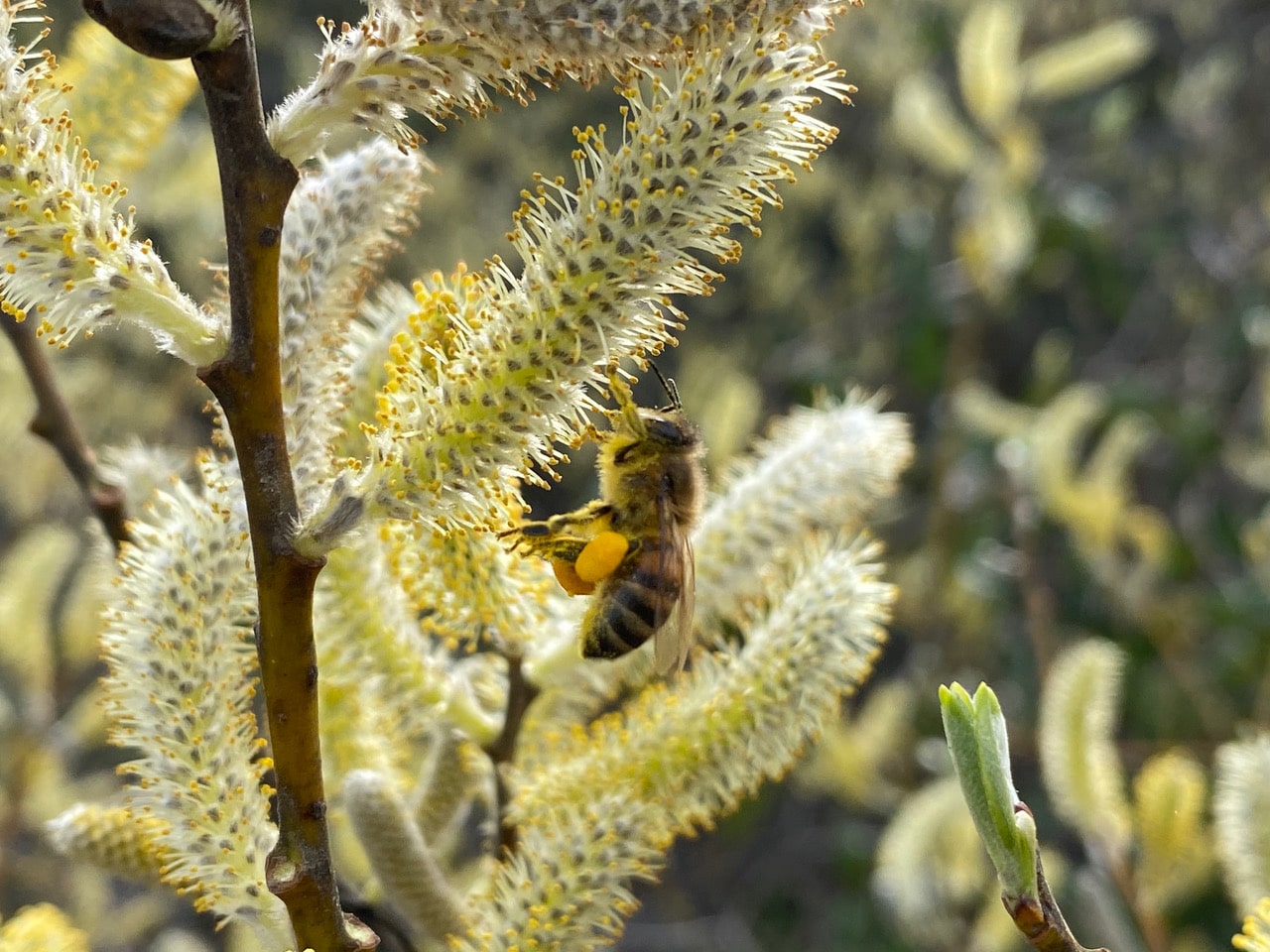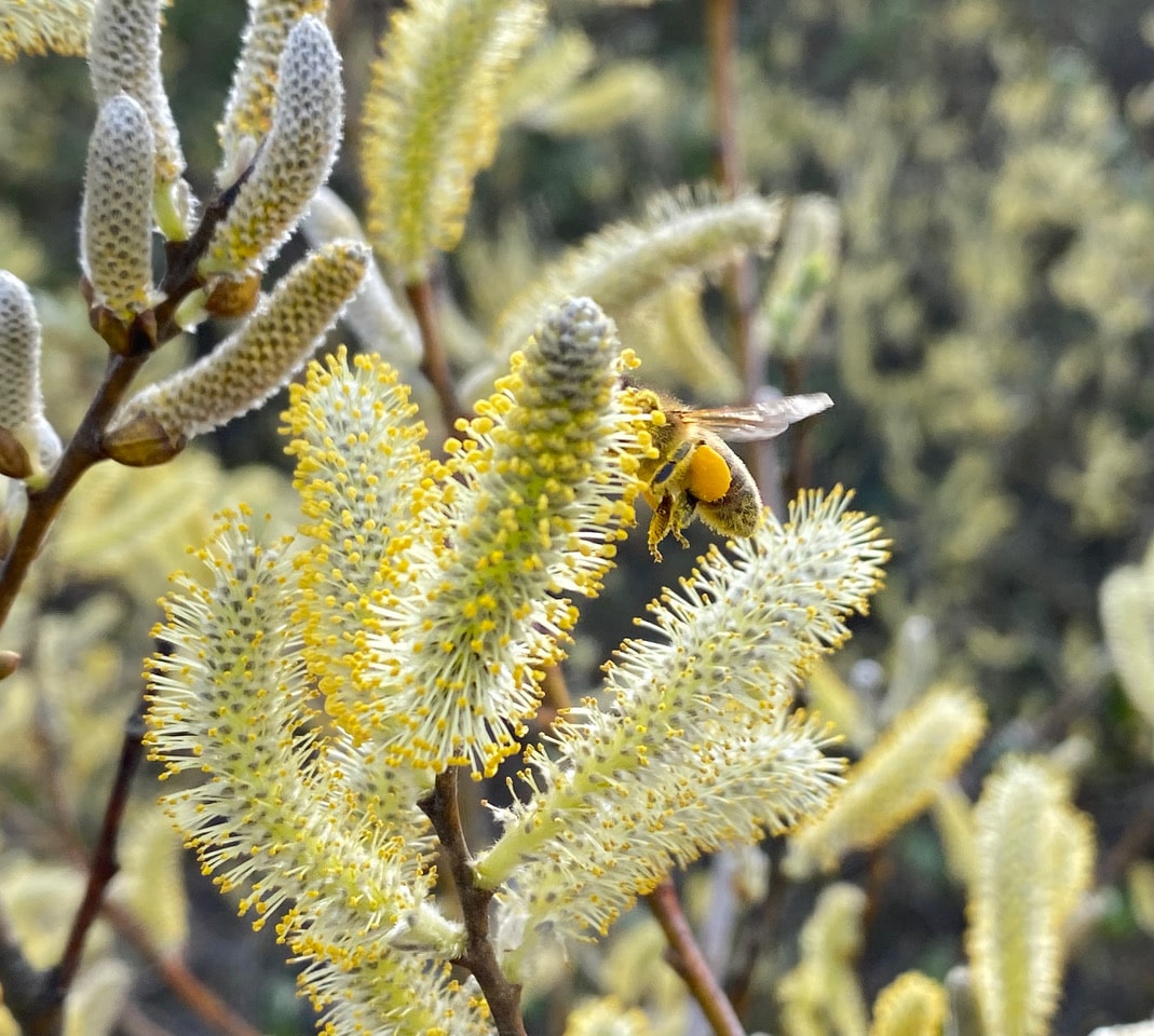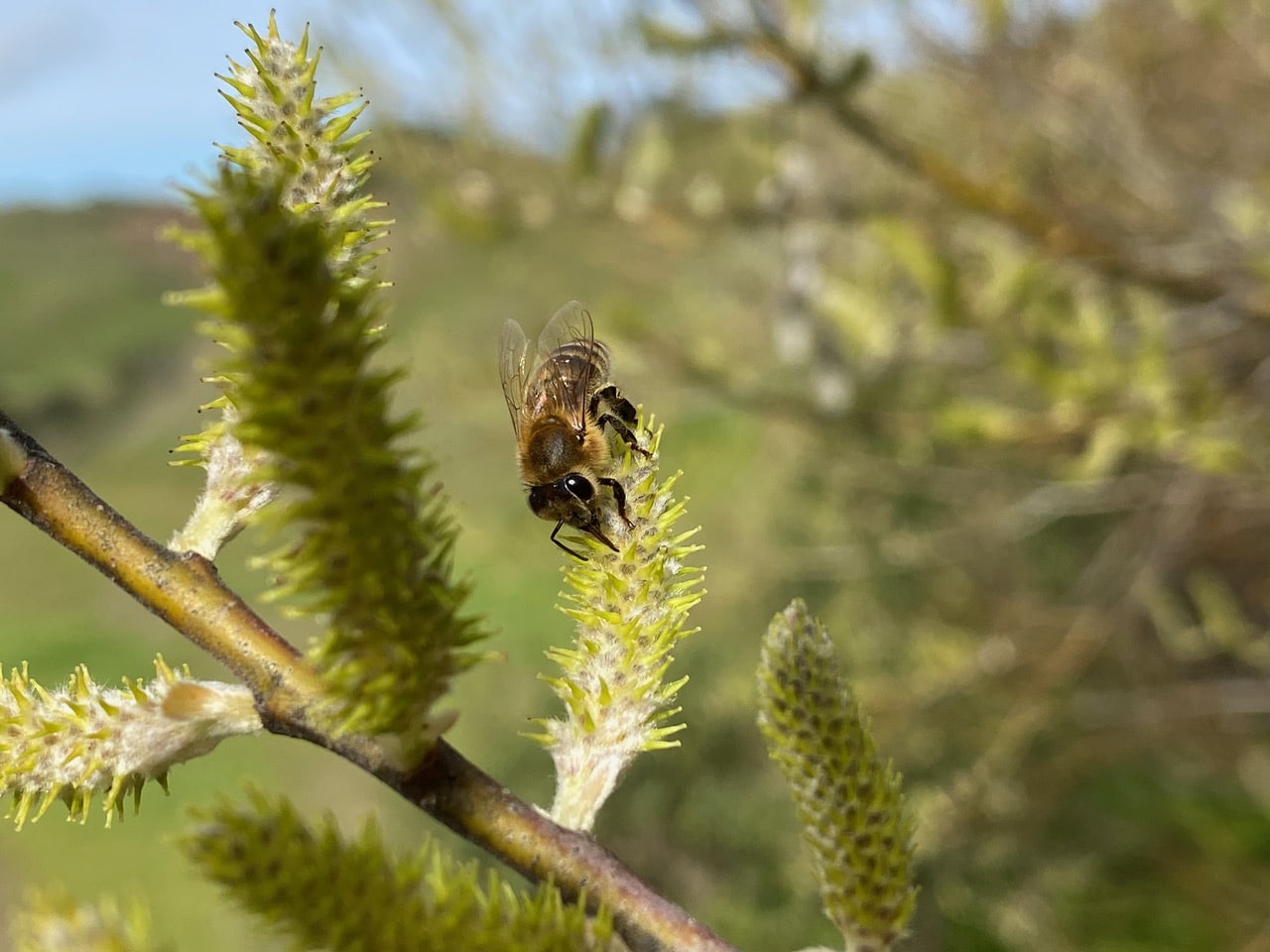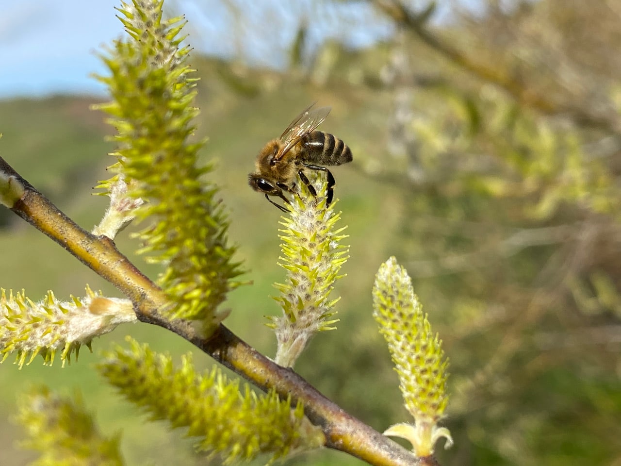 I watch the same bee go from catkin to catkin, tanking up with nectar tirelessly.