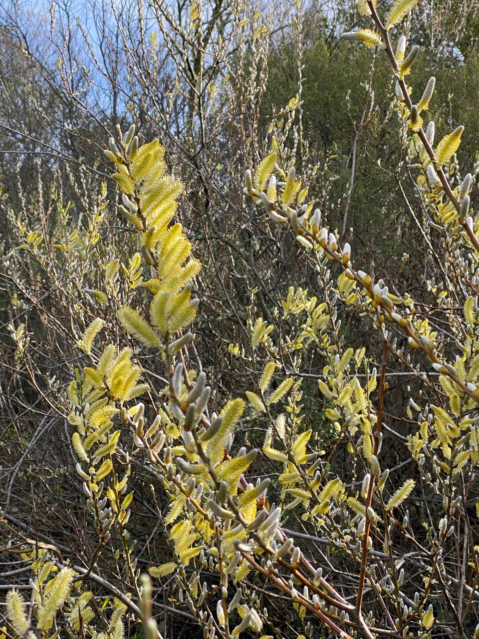 I lean into this stand of male Arroyo Willow to take in the exuberance and abundance of its yellow blooms.