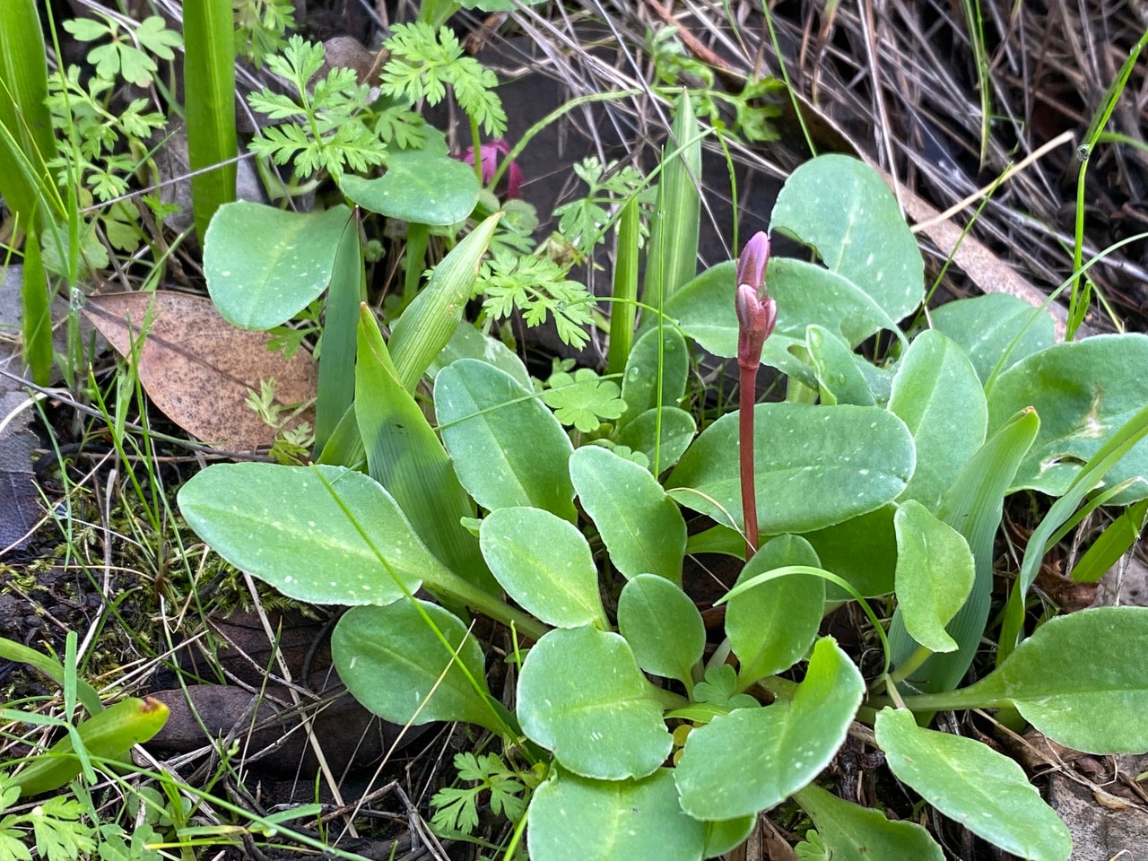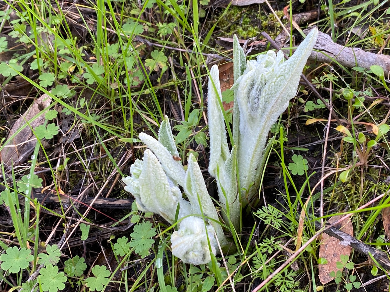 And these leaves hugging the wet rocky bank among the mosses are the California saxifrage, Micranthes californica. Wow, we’re on the verge of a spectacular bloom season!