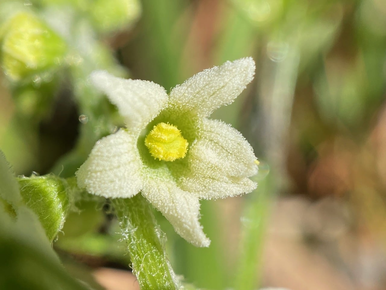 The corolla is densely covered with short glandular hairs.