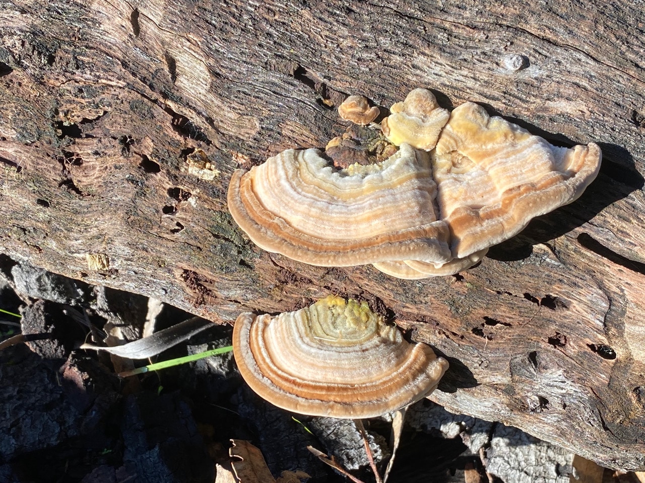 The rotting tree trunks have taken on life of their own. These thick fuzzy fungi have sprouted from a log on the ground.