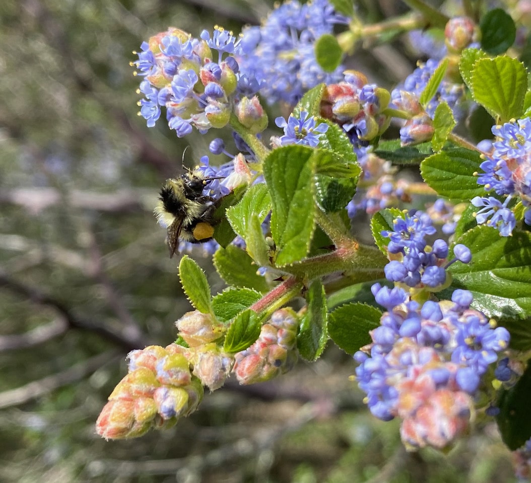 The tiny flowers of Ceanothus are fragrant, and mass together in dense puff-shaped clusters to make a show attractive to bees.