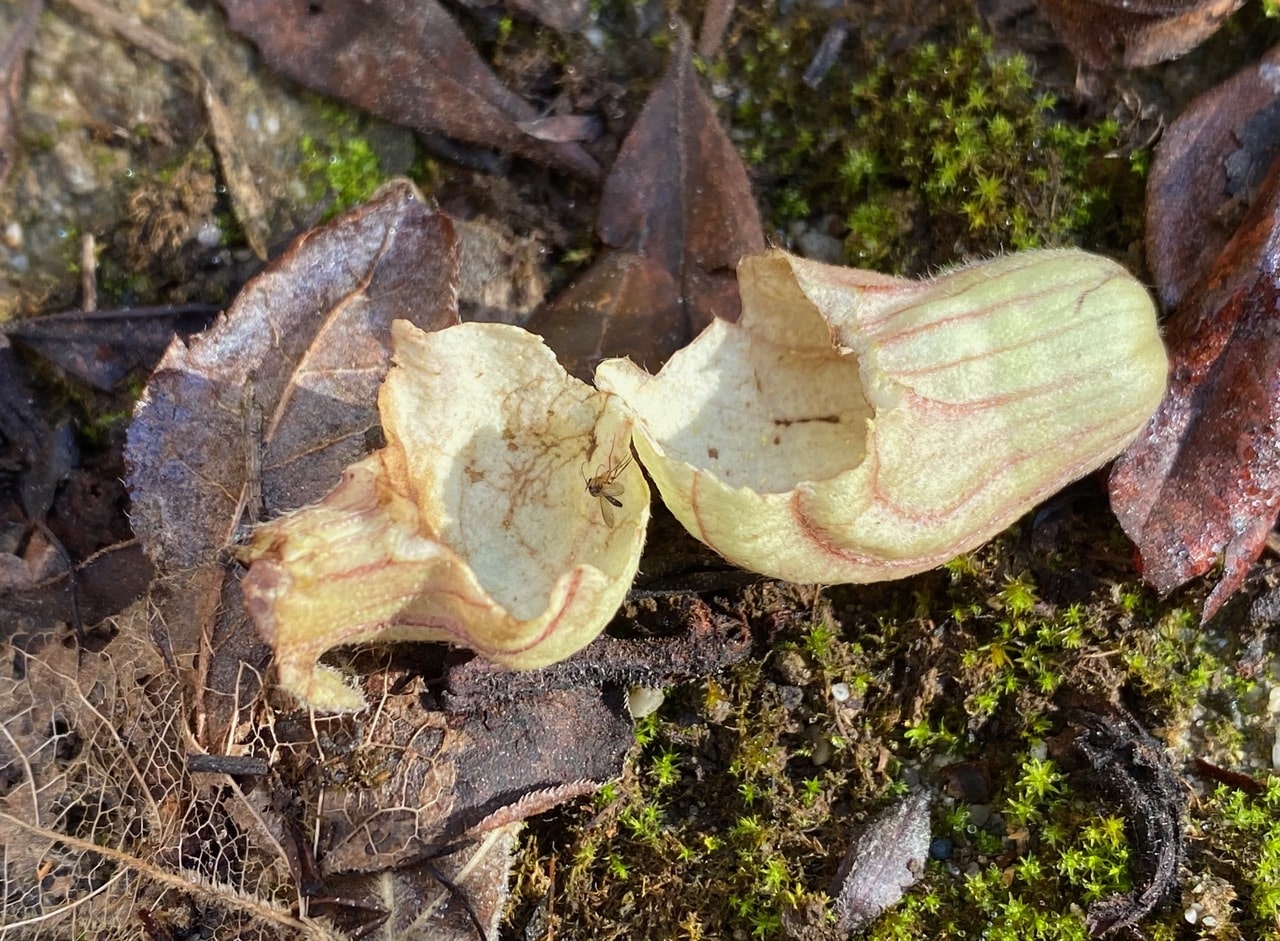 I pick the flower and tear it open. No insects fly out, but there is a dead mosquito-like insect lying at the bottom of the “bowl”.