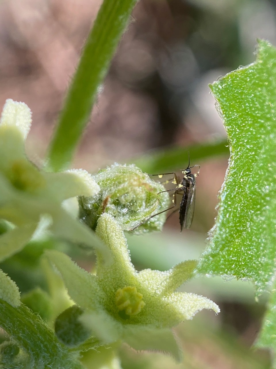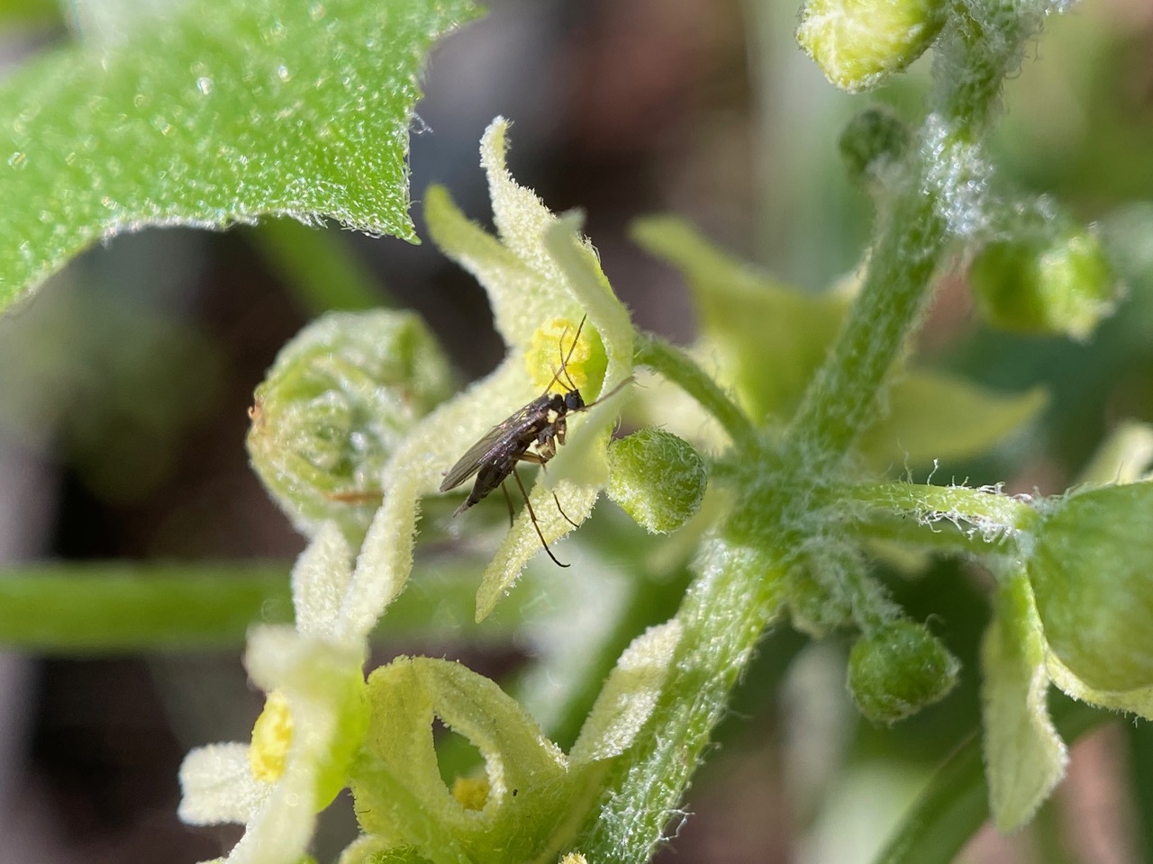 Here’s another Dark-winged Fungus Gnat foraging on a Marah flower.