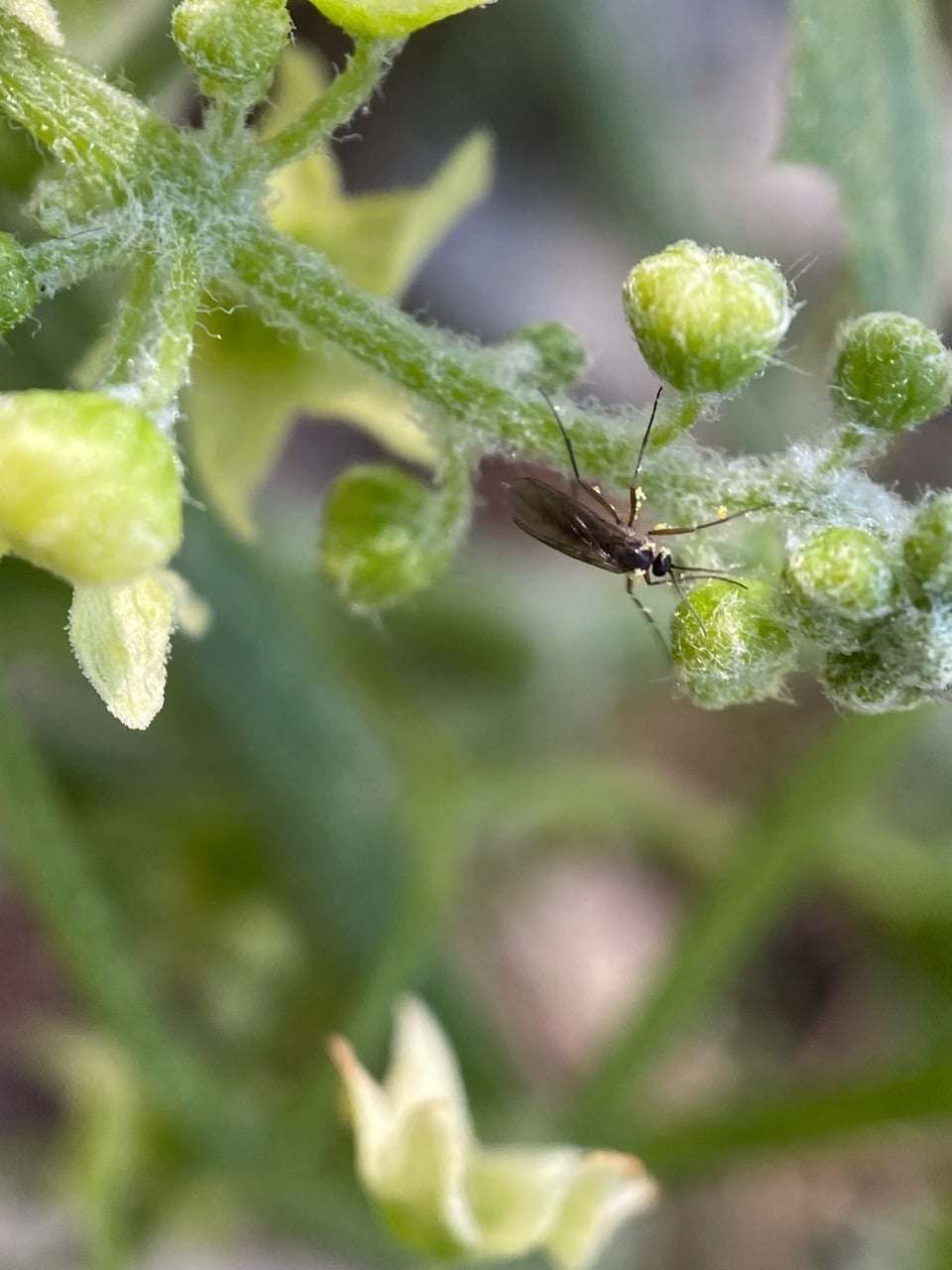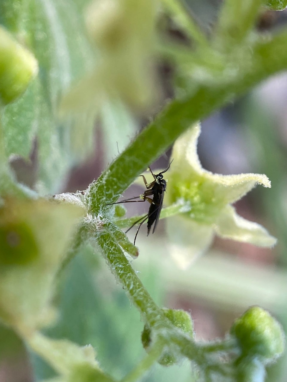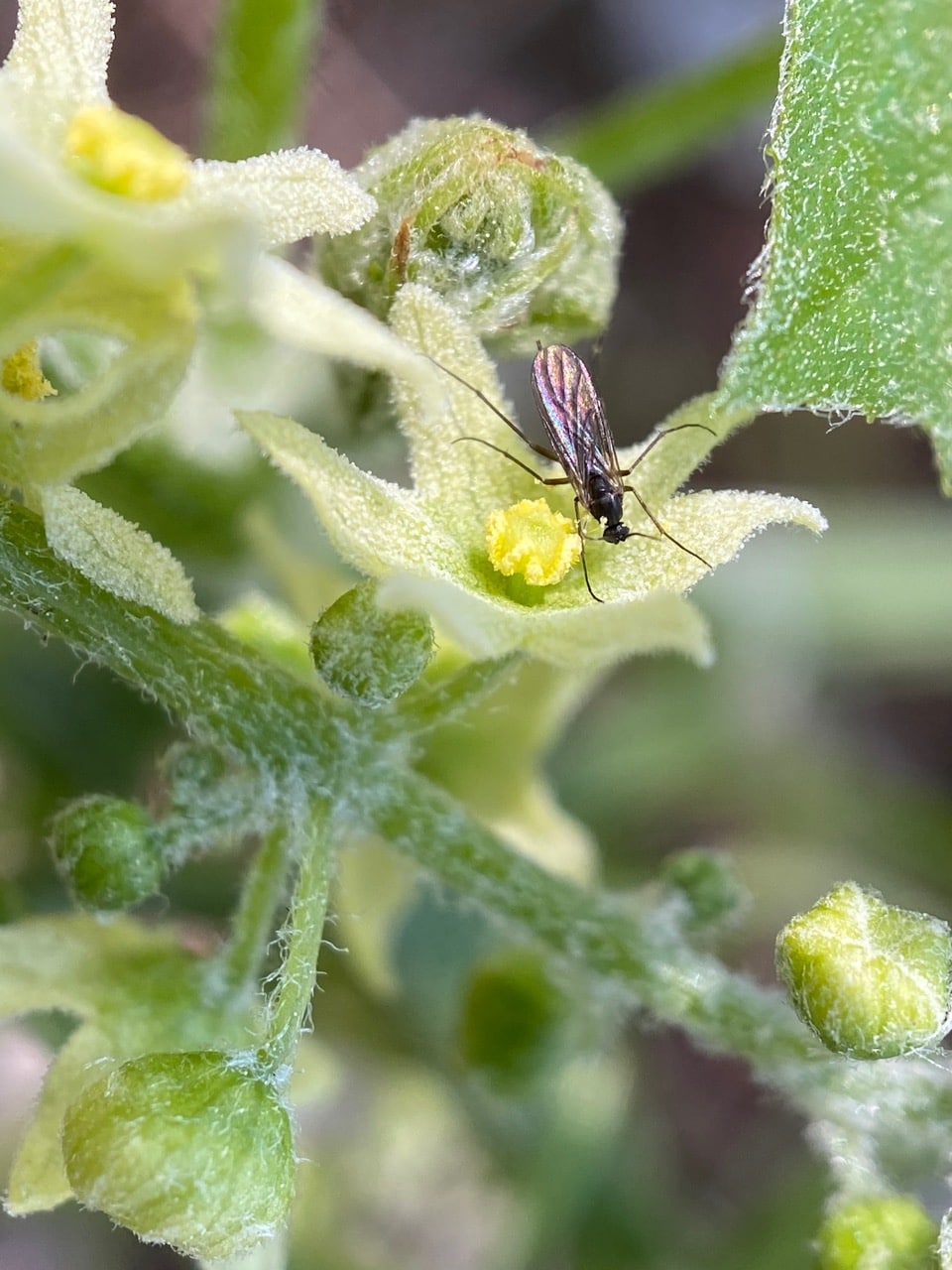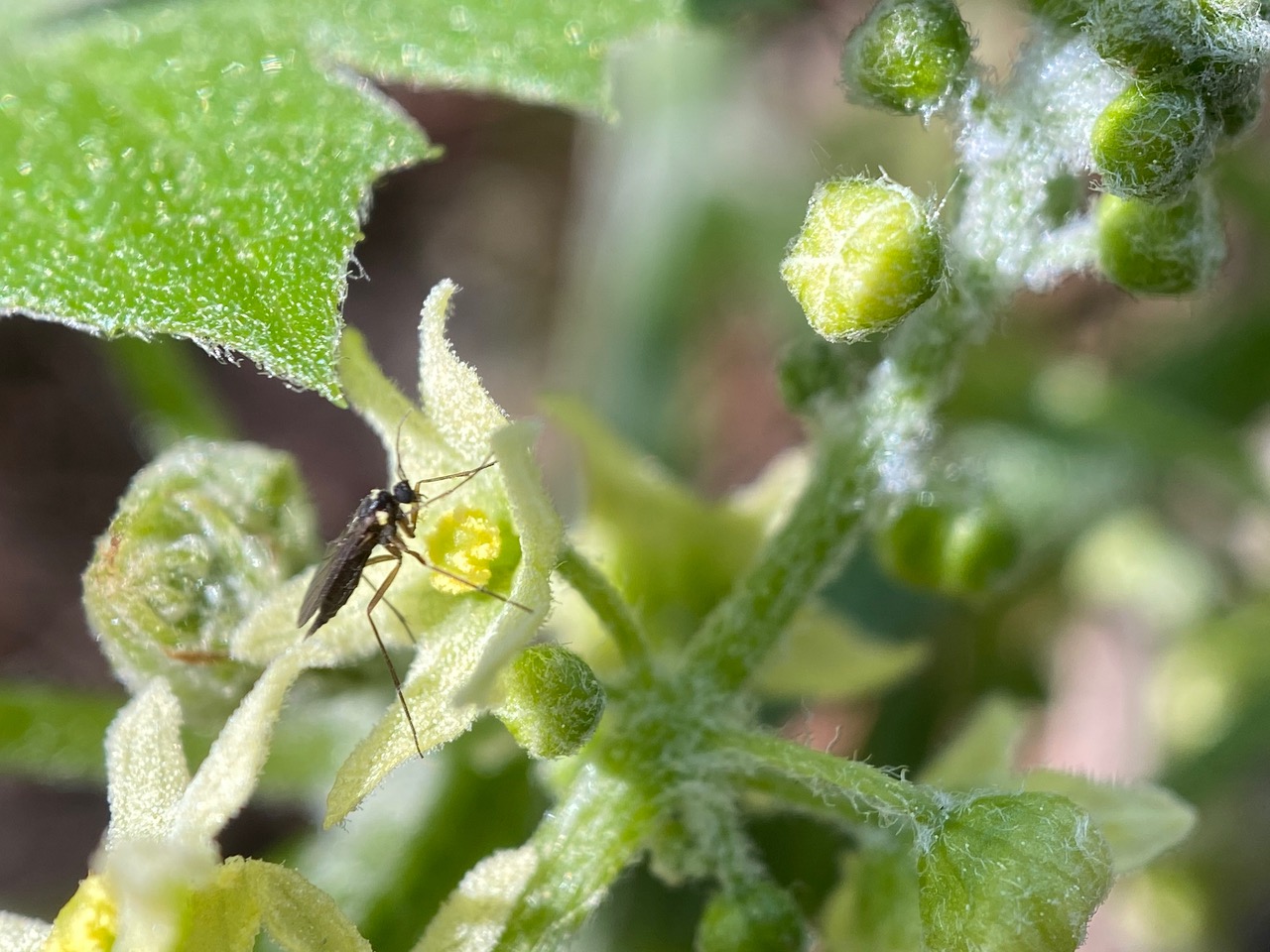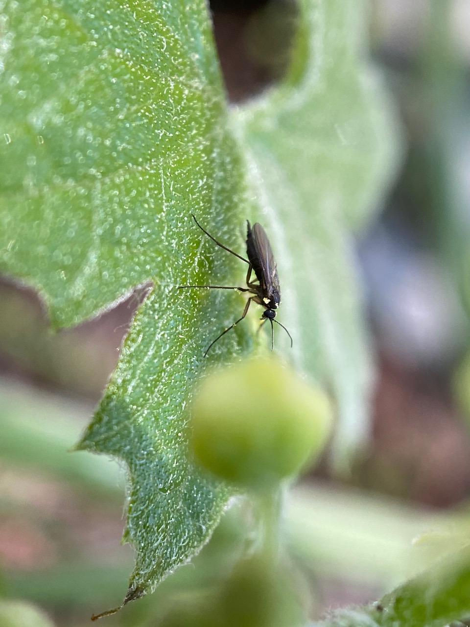 Hey, that’s a different pollen-covered insect on the leaf! A Dark-winged Fungus Gnat (family Sciaridae)?