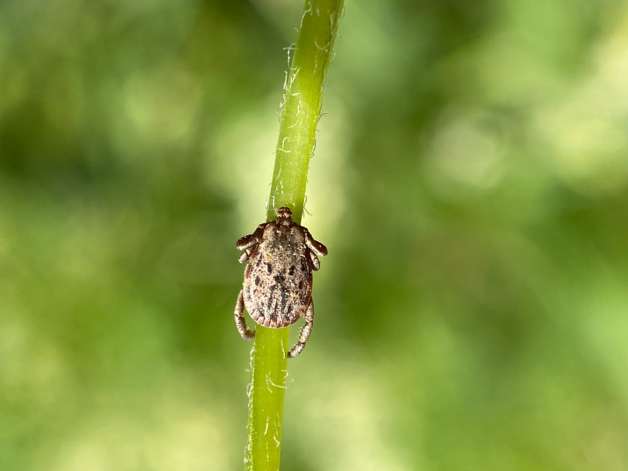 Ticks pick a place to wait by identifying well-used paths, resting on the tips of grasses and shrubs. They find their hosts by detecting animals’ breath and body odors, or by sensing body heat, moisture, and vibrations. Some species can even recognize a shadow. Ticks can’t fly or jump, but many species wait in a search position known as “questing”. Holding onto leaves or grass by their third and fourth pair of legs, they hold the first pair of legs outstretched, waiting to climb on to a passing host. When a host brushes the spot where the tick is waiting, it quickly climbs aboard. Recent research has shown that ticks are significantly aided by electrostatic forces (static electricity) when attaching to their hosts, allowing them to be passively attracted across air gaps to land on potential hosts due to the natural electrical charges animals accumulate on their bodies.