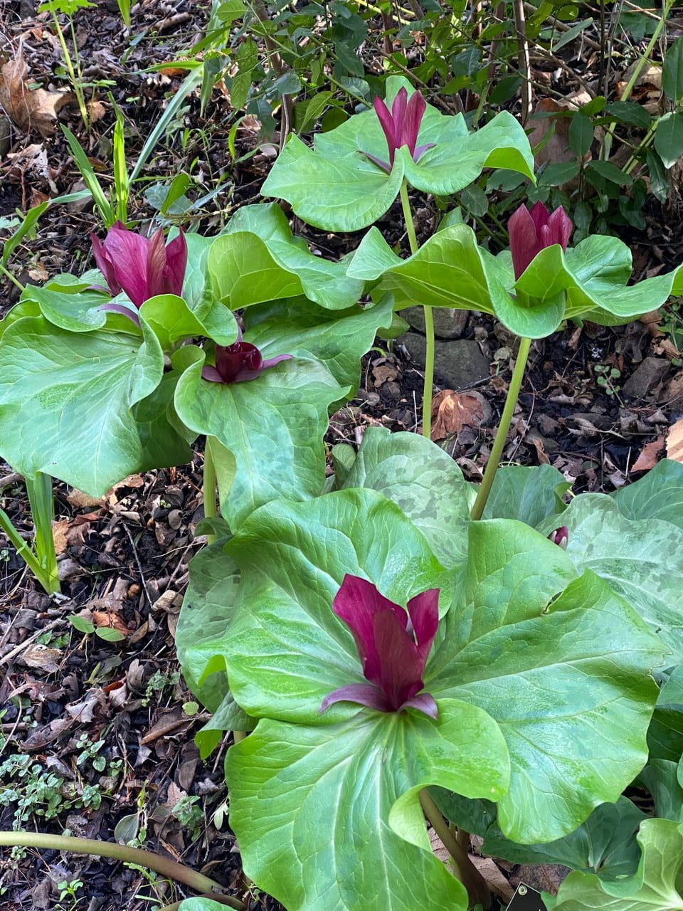 The name “trillium” incorporates the Latin word for three (“tri”), which refers to the three-part symmetry around which the plant parts are organized – in a single blossom there are three petals, three sepals, and likewise, the leaves (technically, bracts) also come three to a plant. Trilliums are divided into two groups, sessile or pedicellate. In the Giant Trillium, the flowers are sessile, meaning they are not subtended by a stalk or pedicel, but sit upright directly on the leaves.