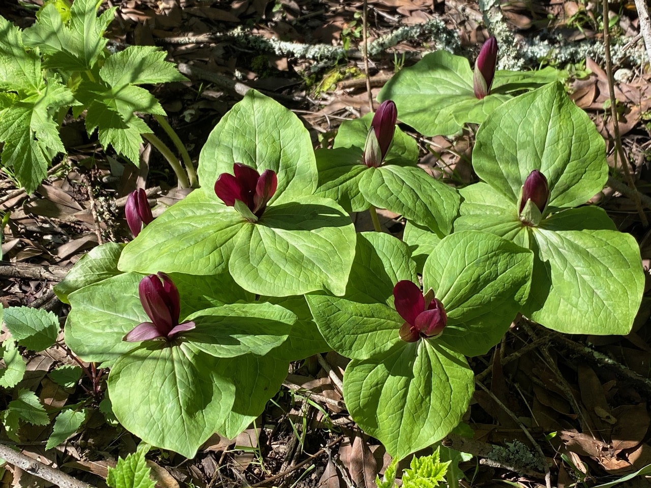 A patch of Giant Trillium, Trillium chloropetalum is blooming beautifully. As is my habit now, I peek into each flower to make sure that I am not missing any pollinator. Nada, all’s quiet. These flowers are not divulging their pollination secrets.