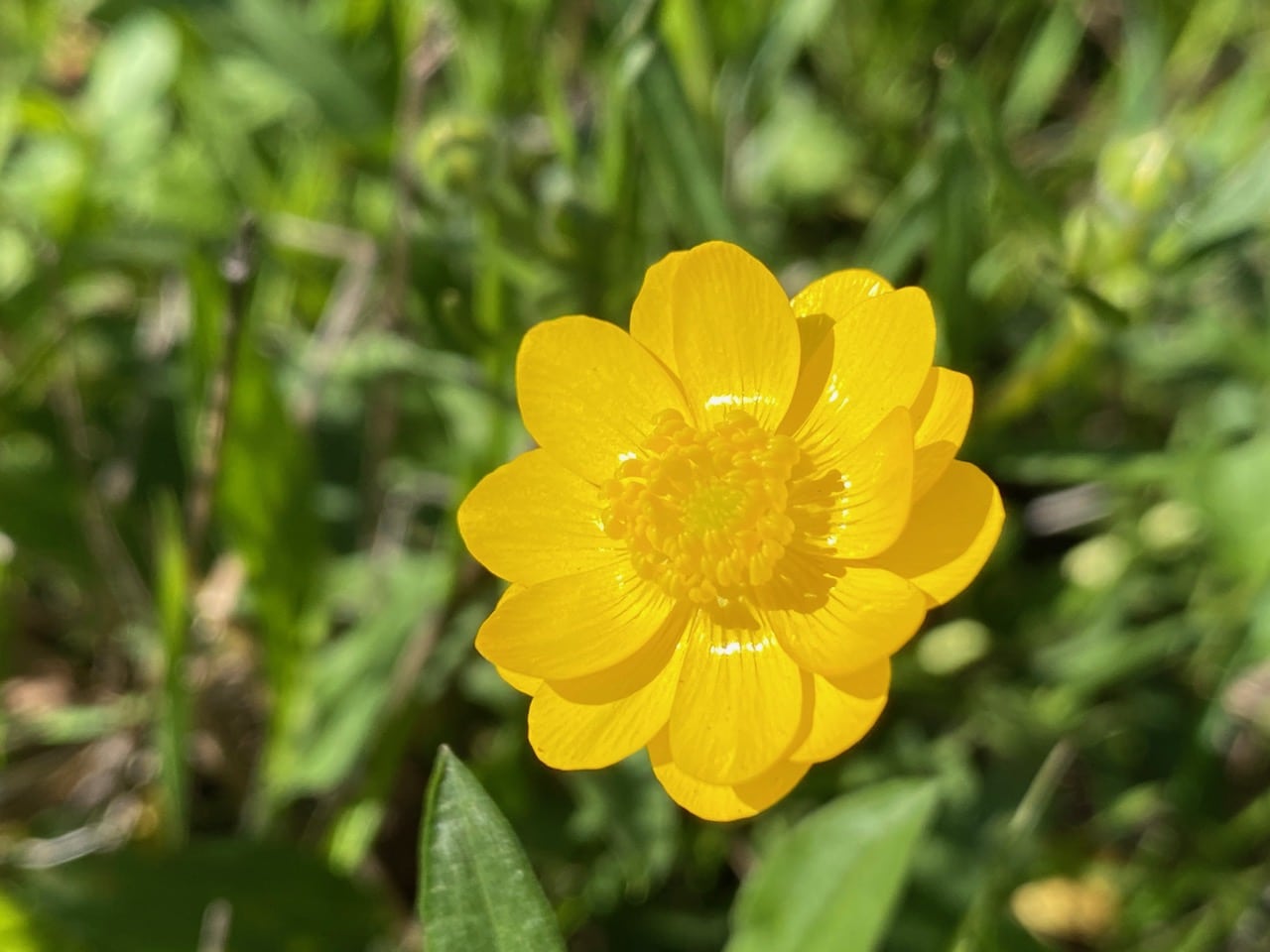 Buttercups have a trick for warming their flowers that may be unique to this group of plants. The coloration of glossy buttercup flowers is due to a rare combination of structural and pigmentary colorations. The top single-cell layer of the petal, the epidermal layer is ultra-smooth and contains pigments that reflect yellow. This layer is anchored lightly to a starch layer below. Between the epidermis and the starch are pockets of air. The interference between the epidermis and the airy layer below creates a thin-film producing a shiny, mirror-like effect. The light that is not absorbed by the pigments in the epidermis ends up passing through and hitting the starch layer below the air pockets. The starch layer has a scattering effect, sending the scattered light back through the pigment layer, intensifying the yellow color. Essentially the pigment is used twice.