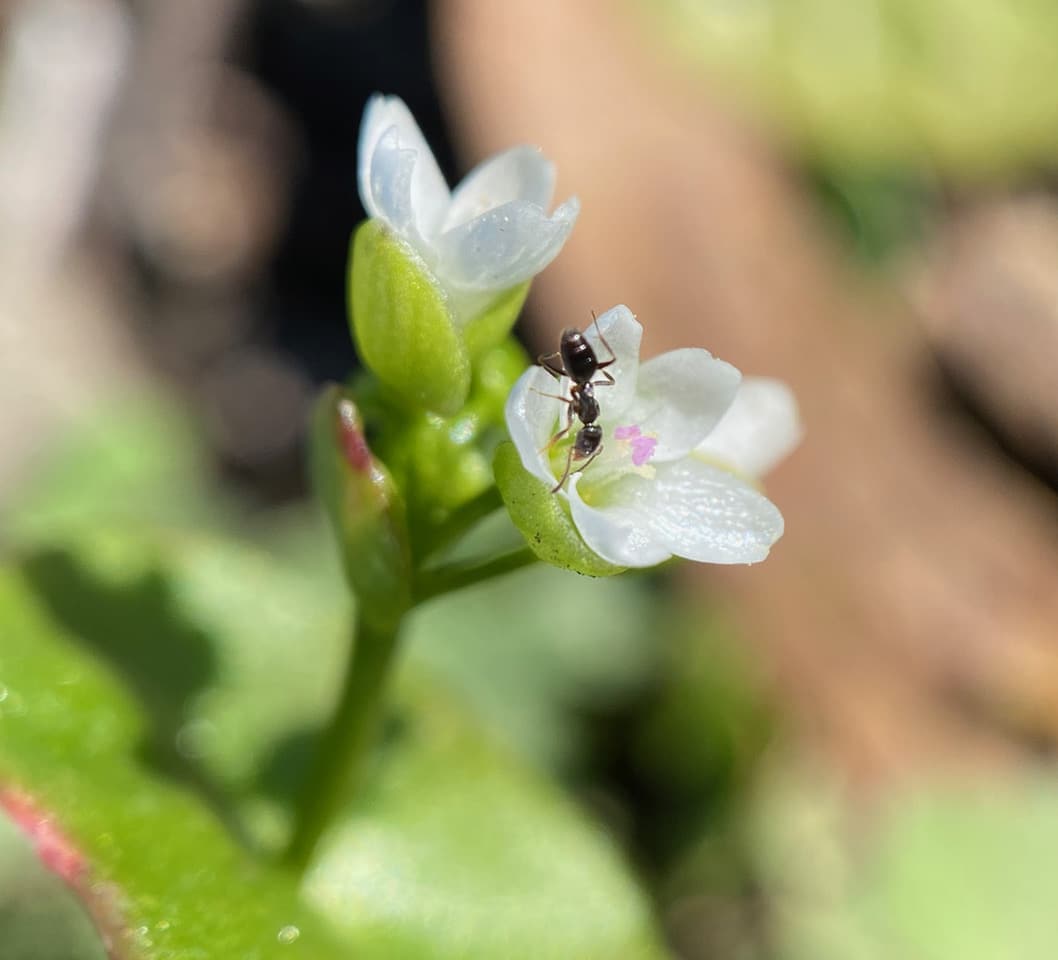 Just then, I notice an Argentine Ant, Linepithema humile (family Formicidae) approach a flower and lower itself under the stamens to seek nectar at the base of the corolla!