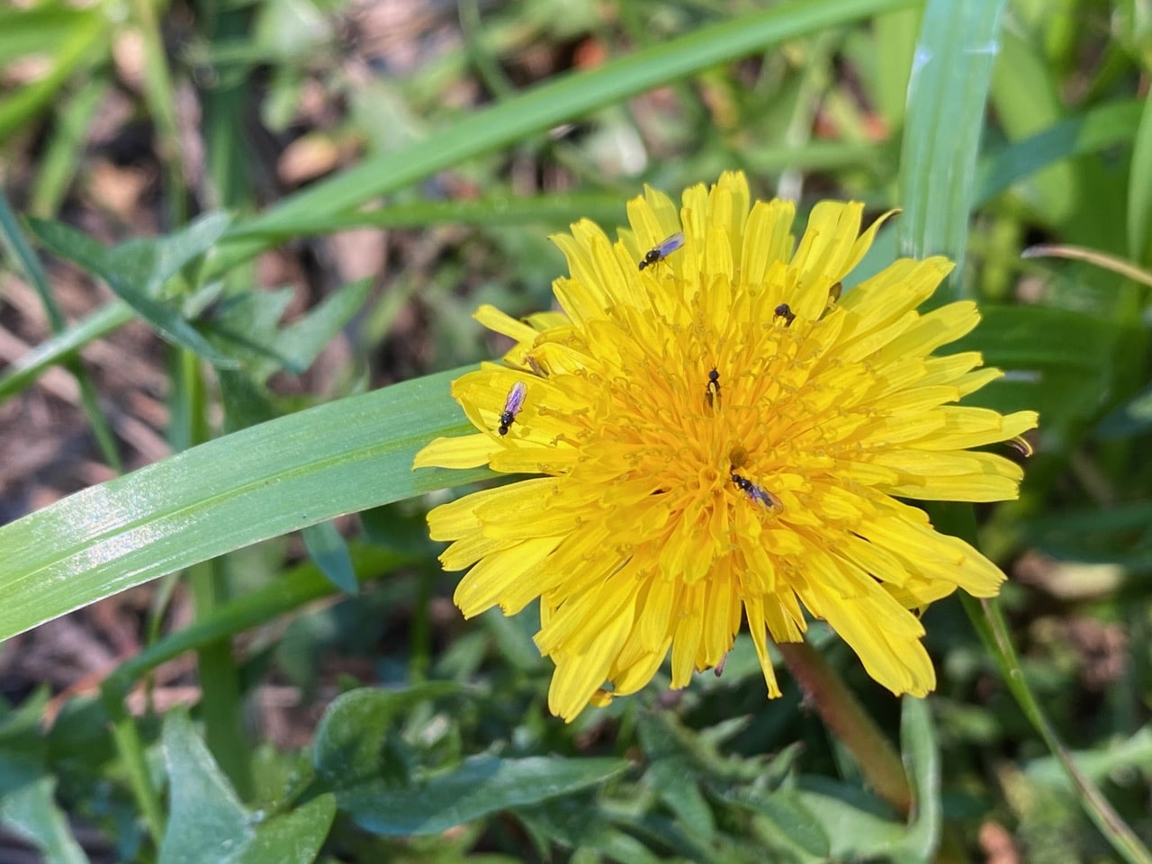 In an open weedy patch, the Hybotid Dance Flies are all over the Dandelion flowers.