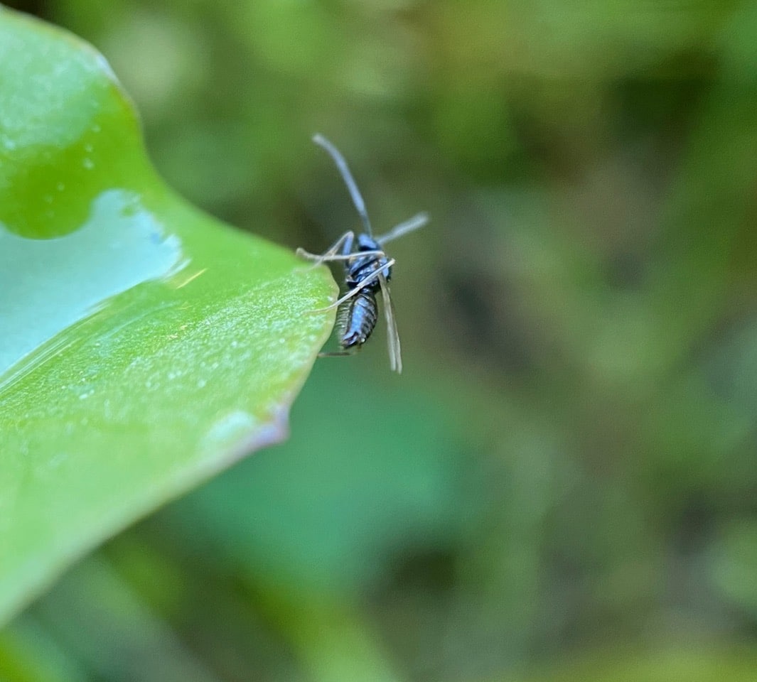 The male finally arrives at the leaf where the queen has been hanging out, but she’s gone!