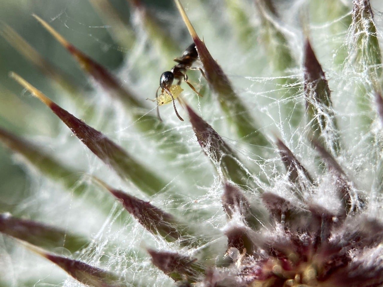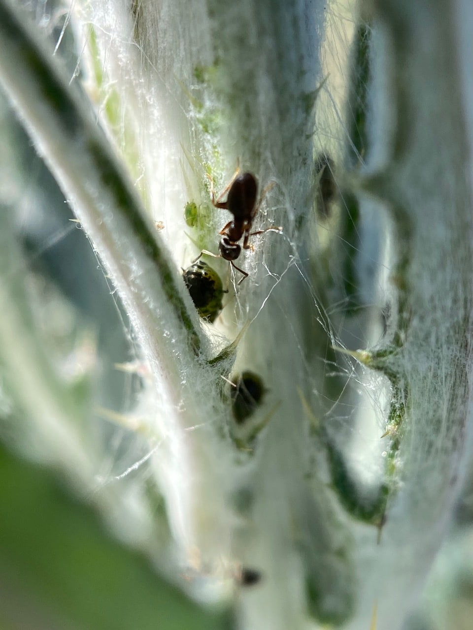 Fascinated, I follow the ant’s every movement. Where is it transporting the aphid?
