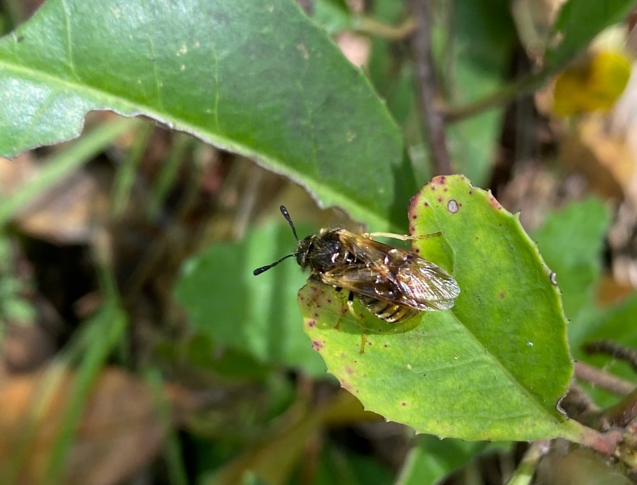 iNaturalist comes up very quickly with an ID – the insect is a Clubhorn Sawfly, Abia americana (family Cimbicidae). Wow, a second Sawfly today, in a different family!