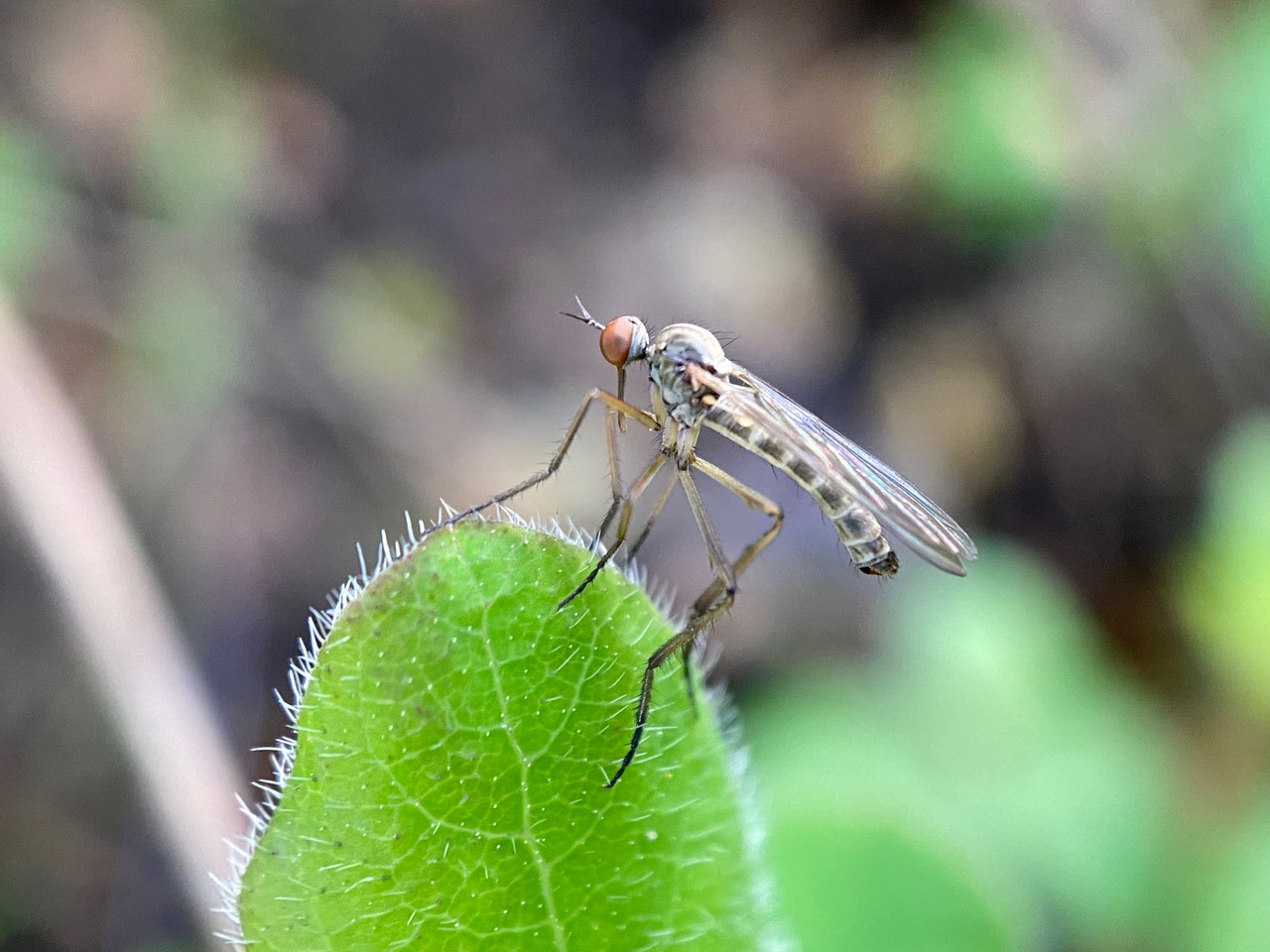 Dance Flies, in the family Empididae, get their name from the habit of males of some species to gather in large groups and dance up and down in the air in the hopes of attracting females. They are predominantly predatory and they are often found hunting for small insects on and under vegetation in shady areas. Both genders may also drink nectar. Male dance flies give their sweeties a nuptial gift to eat while they mate. The gift is thought to enable her to complete the development of her eggs. Males may wrap their gifts in balloons of silk or spit, hence the other common name of Balloon Fly.