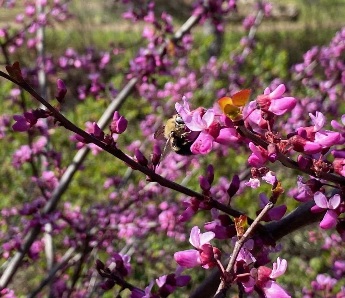 Grab your close-focus binoculars and go watch bees on the Western Redbud while it is in bloom!