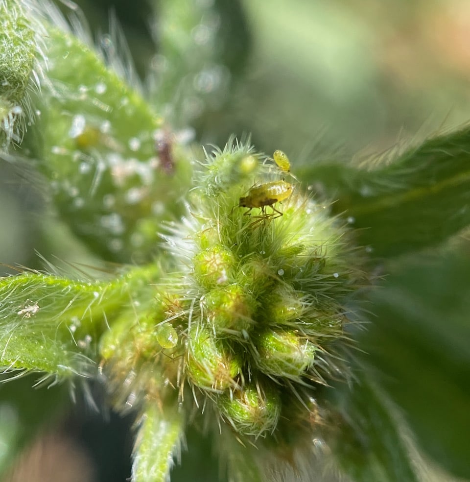 There’s an aphid in the space between the leaves. Has it just given birth to a baby?