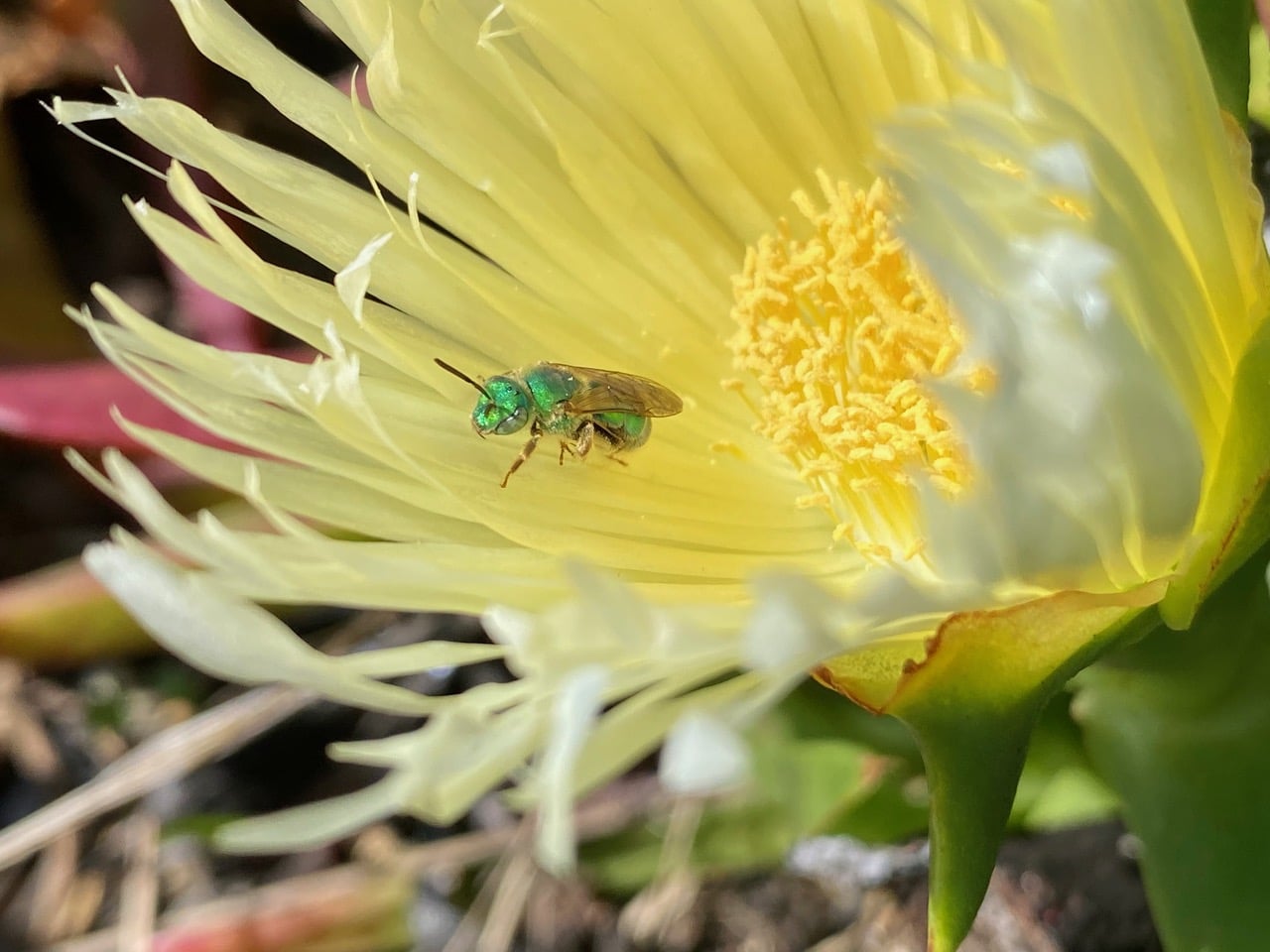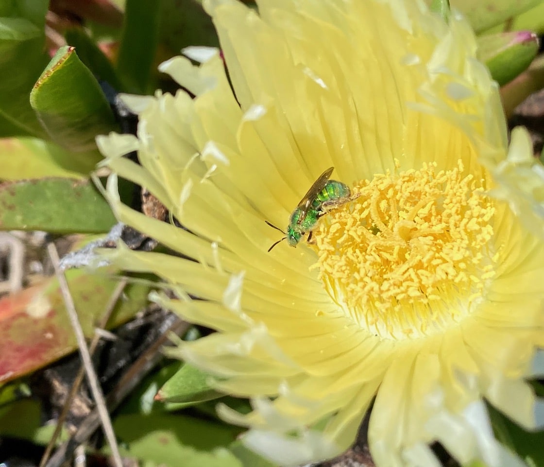 Carpobrotus edulis. A surprise – I always thought of these as summer bees!