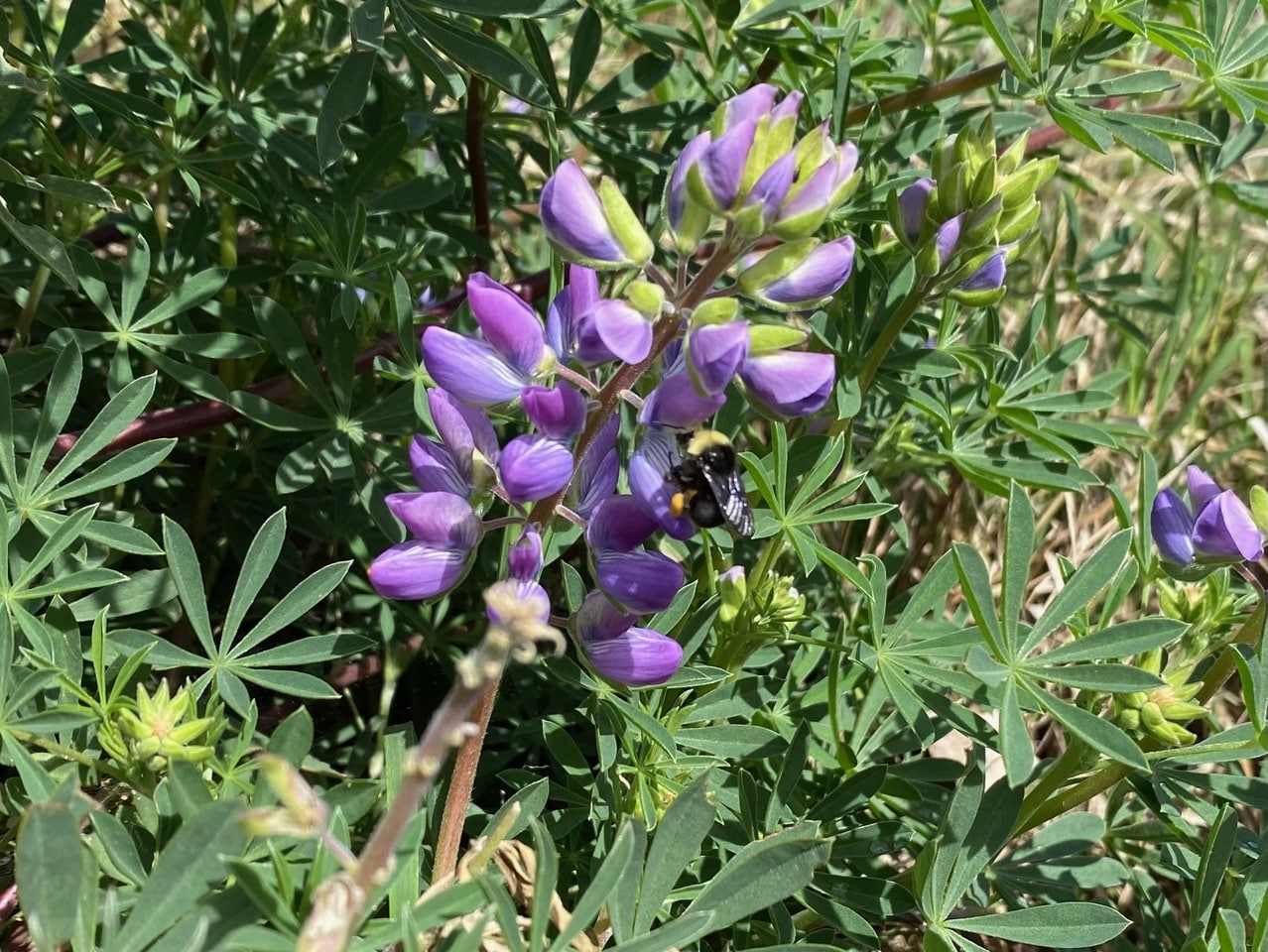Note that each flower resumes its original shape and petal position after being tripped by the gentle little bumble bee, leaving no hint whatsoever of the visitation. Lupine flowers dispense their resources discreetly in little explosive bursts, and are visited repeatedly by the pollinators.