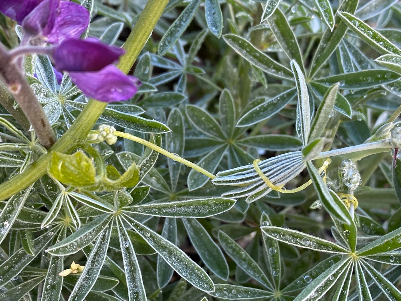 This tendril has such a strong hold on the lupine that the inflorescence is bent. Never underestimate the power of tendrils!
