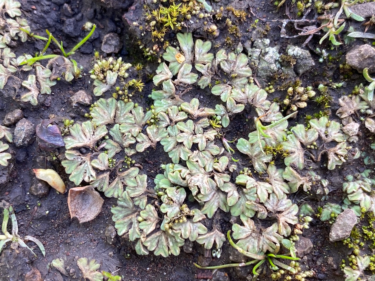I bend down to look at the Common Crystalwort, Riccia sorocarpa