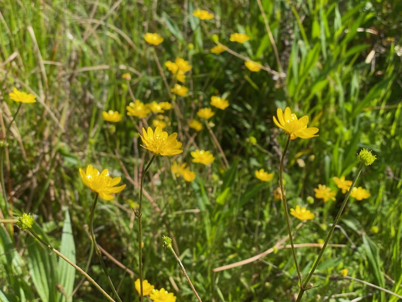 California Buttercup, Ranunculus californicus is in bloom, and I know the perfect place to see them – the undulating meadow flanked by large oak trees by the Padre picnic area in Tilden Regional Parks in the Berkeley hills.