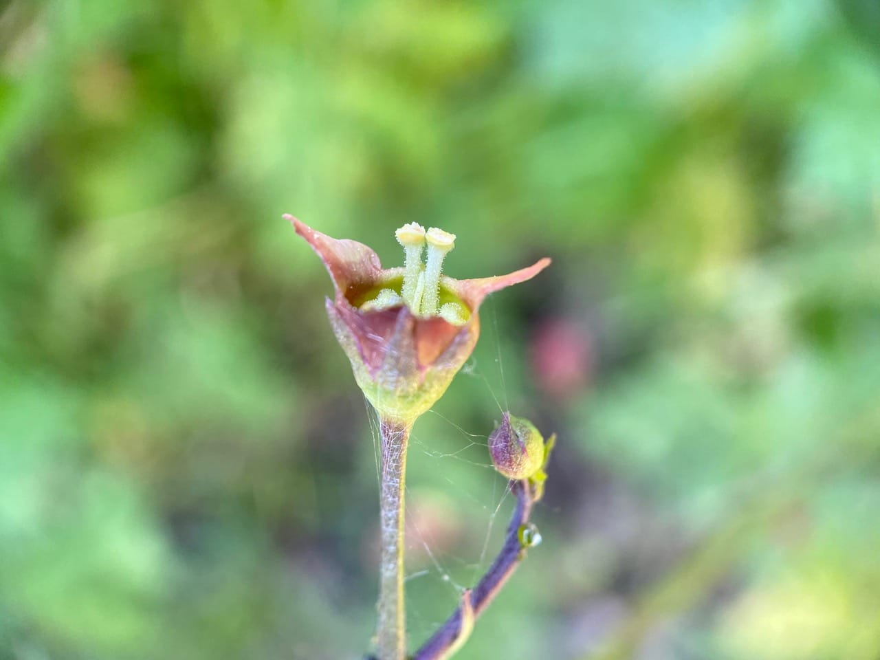 Look what the caterpillar has done – it has eaten all the petals of this Bee Plant flower, leaving the calyx with the exposed stamens. Two of the stamens are up, but the other two have yet to emerge. The caterpillar’s silk strands are still visible.