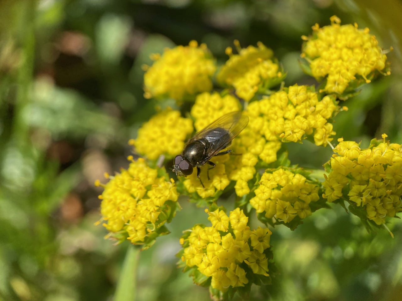 Of all the flowers available at the Backbone, the shiny black hover flies, Blacklets, Cheilosia sp. (family Syrphidae) show a strong preference for the Biscuit Root, almost to the exclusion of other flowers. I wonder why? Cheilosia larvae feed in the stems of plants or in fungus.