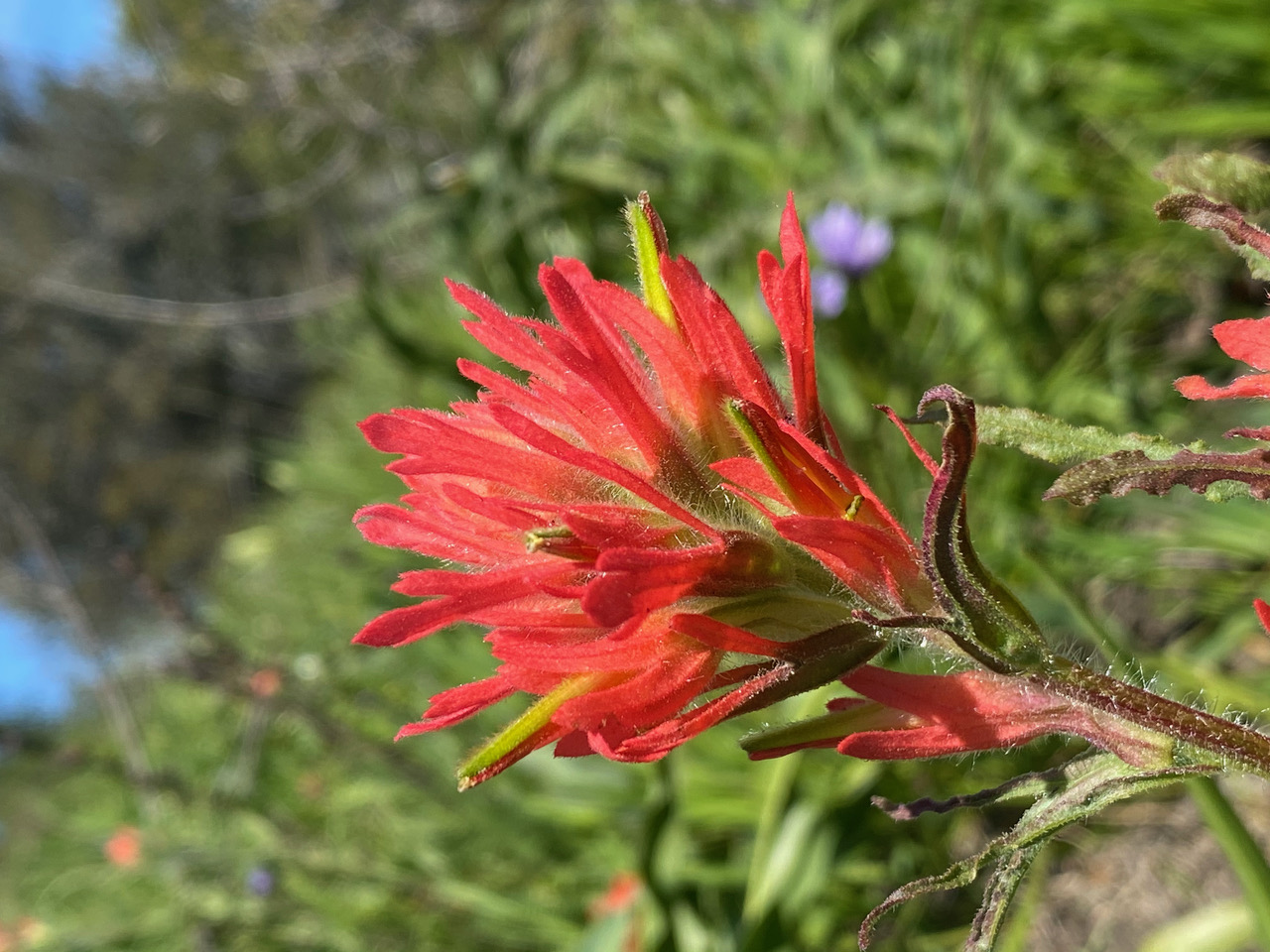 I scramble down the steep slope at the Backbone area to get a better look at this stunning red Indian Paintbrush, Castilleja affinis.