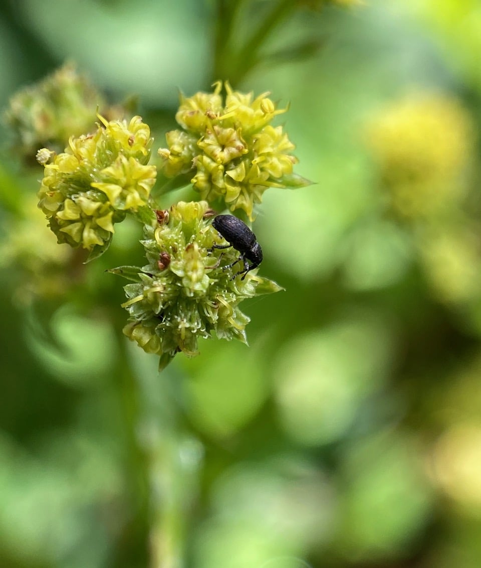Everywhere I look on the sanicle, the weevils are mating!
