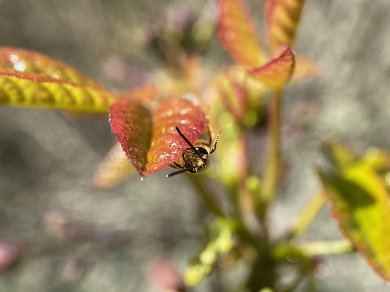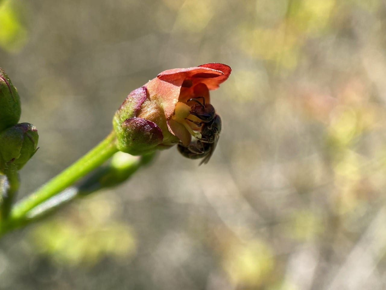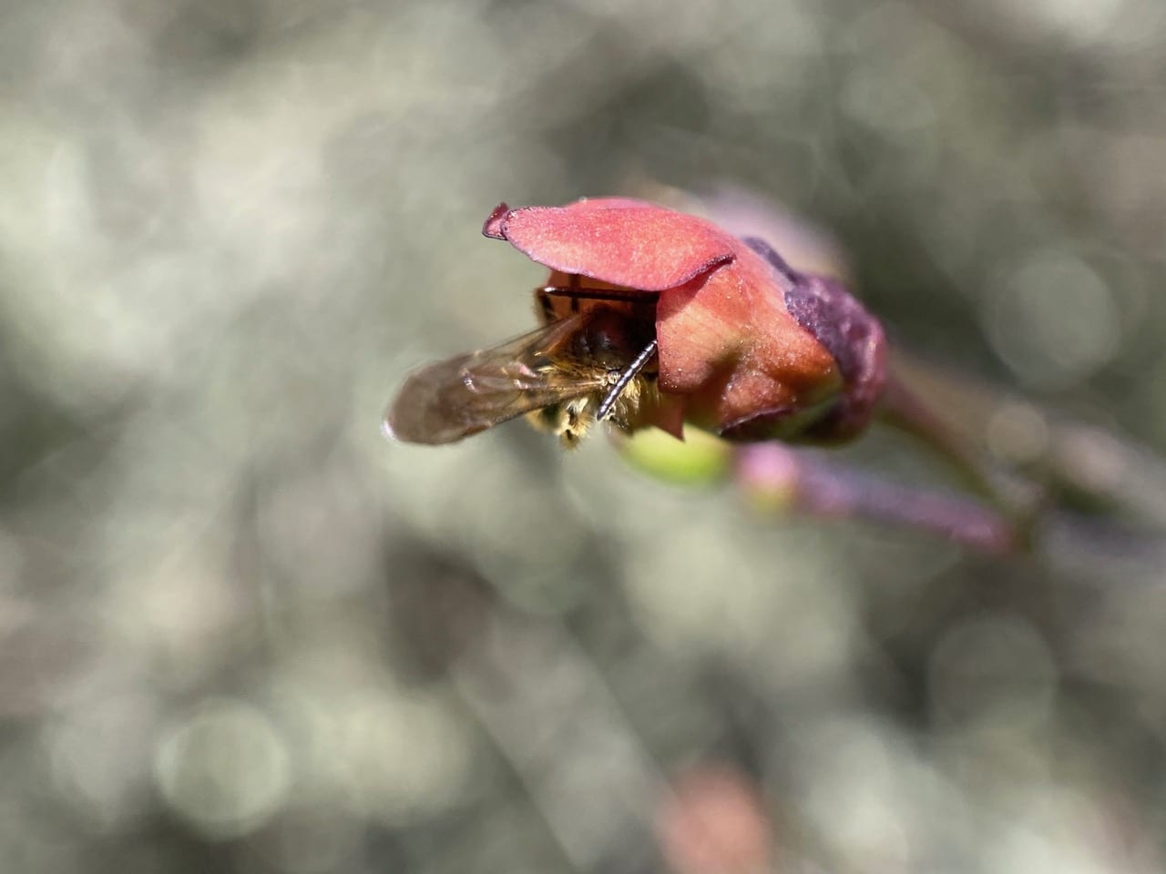 Before flying off, the bee cleans his antennae – “Gotta look good for the girls!” The male bees far outnumber the females on the Bee Plant today. Perhaps in the coming days, we’ll see more females.