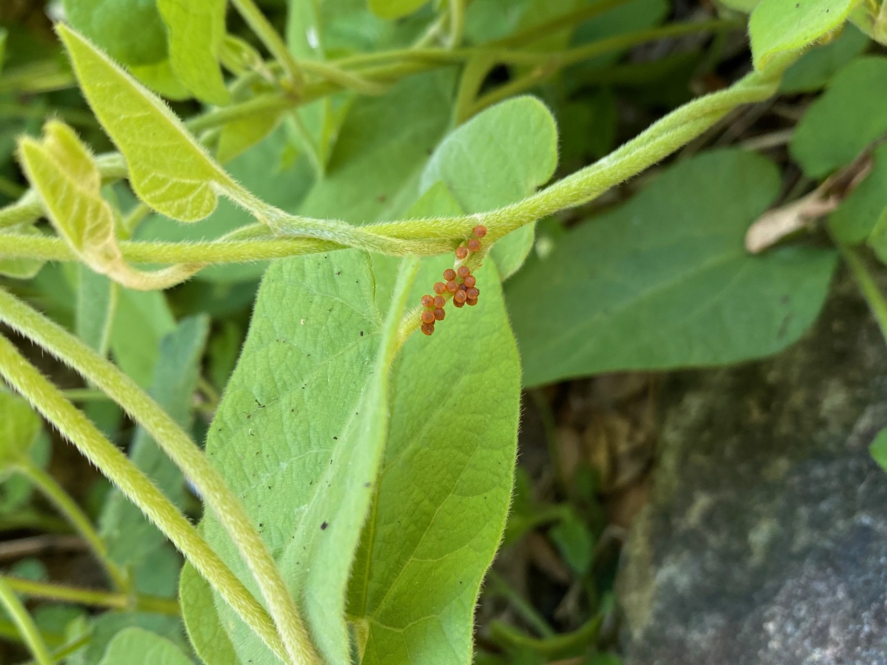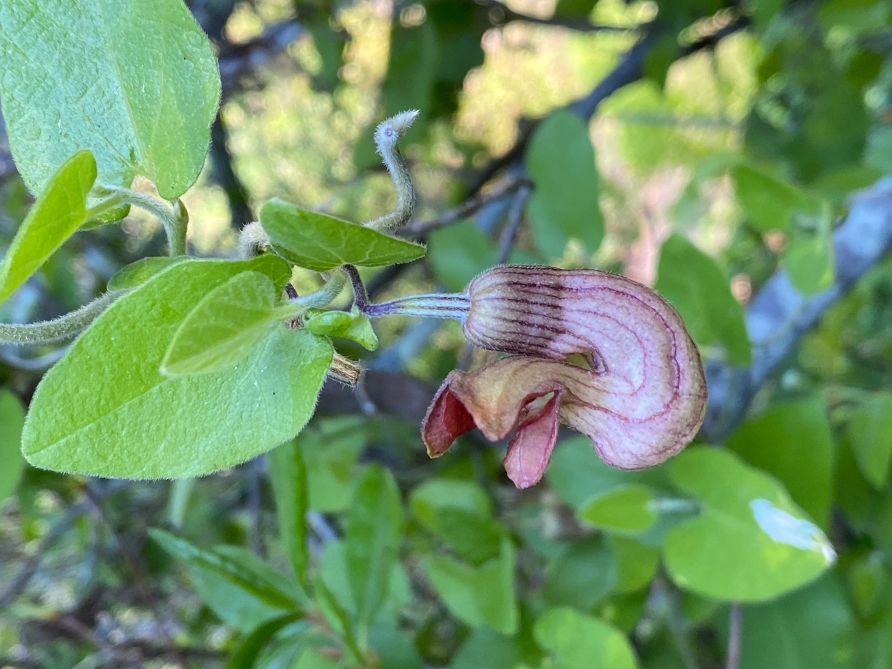 I make my way directly to the robust stand of California Pipevine in the garden. There are only a few flowers left on the old vines.